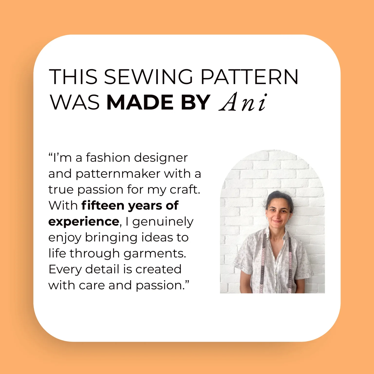 The pattern is available in sizes XXS to XXXL, covering a range of body types. It also includes a 3/8” (1 cm) seam allowance, saving you time during the cutting process. The Asymmetrical Vest is designed with flattering front princess seams and back darts, ensuring a structured fit. This half-vest design is perfect for layering over shirts, blouses, or dresses, making it a must-have in your handmade wardrobe.