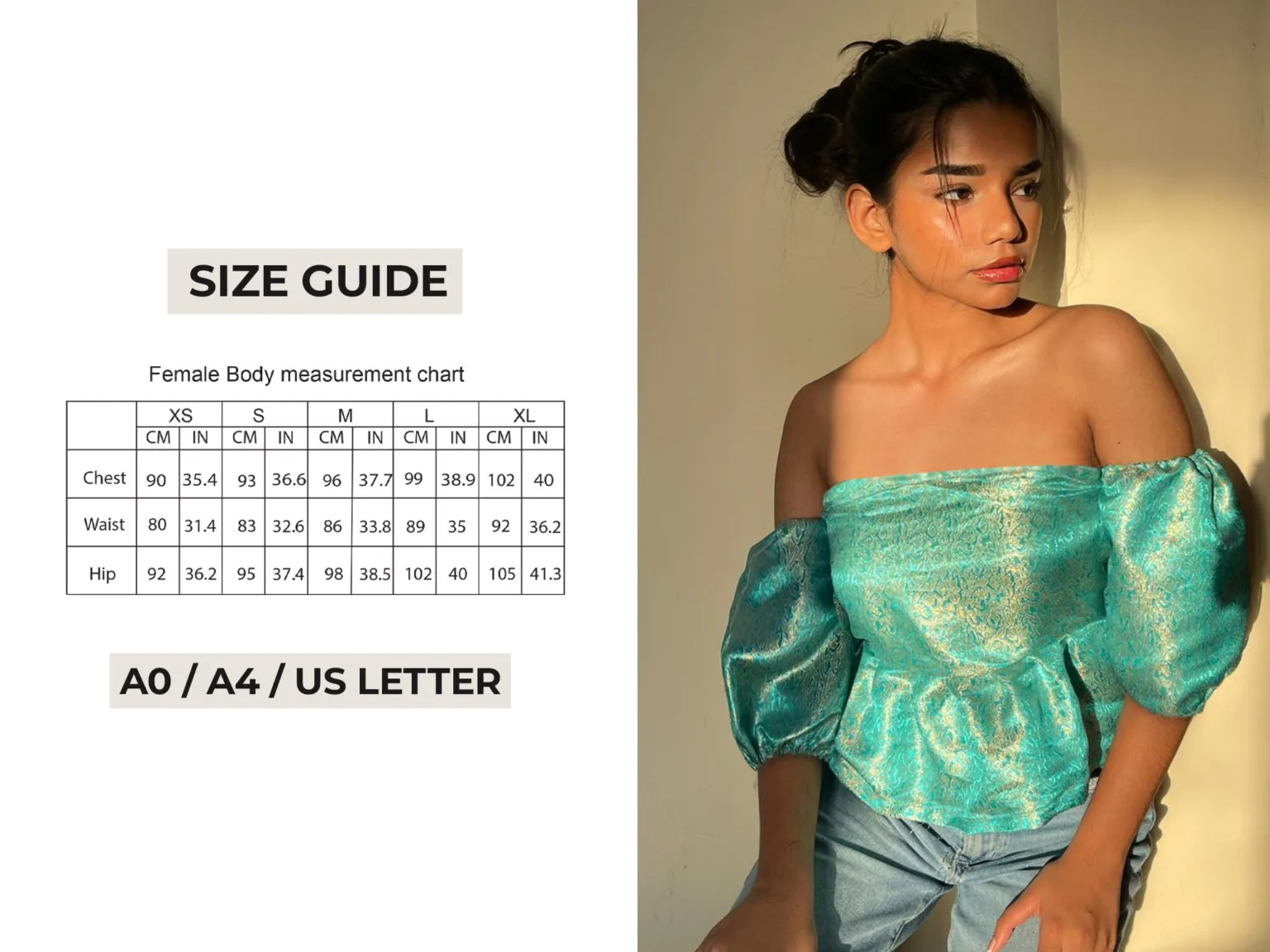 You can easily print this pattern as a digital PDF download in US Letter, A4, or A0 sizes at home or at any local print shop. The design includes seam allowances, allowing you to start sewing right away.