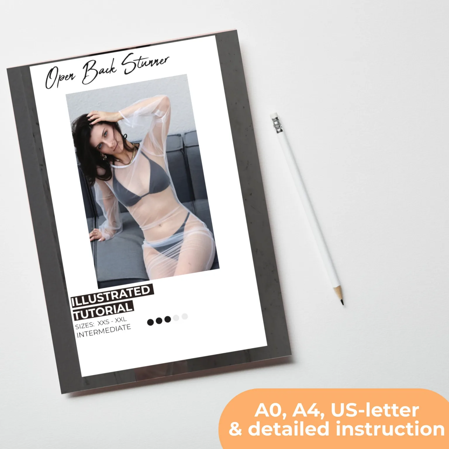 This beach cover up pattern is designed for intermediate sewists seeking a stylish, sheer overlay dress. Perfectly suited for layering over a bikini or bodysuit, this swimsuit cover up pattern features a loose, relaxed fit with long sleeves and a round neckline, ensuring comfort and versatility for your summer outings.