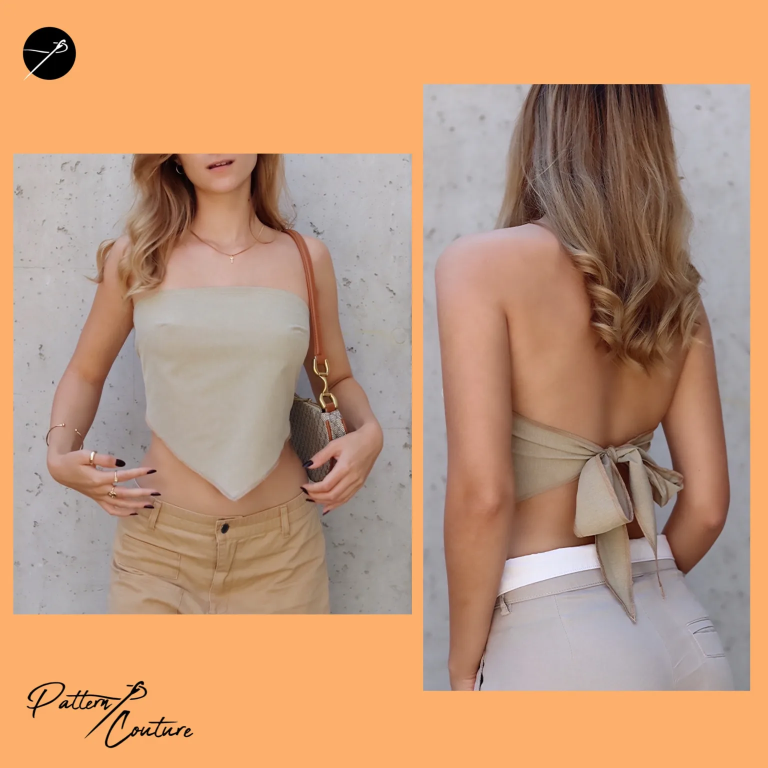 Looking for a beginner-friendly bandeau top sewing pattern? This tie top pattern creates a chic, strapless look that’s perfect for various occasions, from casual summer days to trendy night-out outfits.