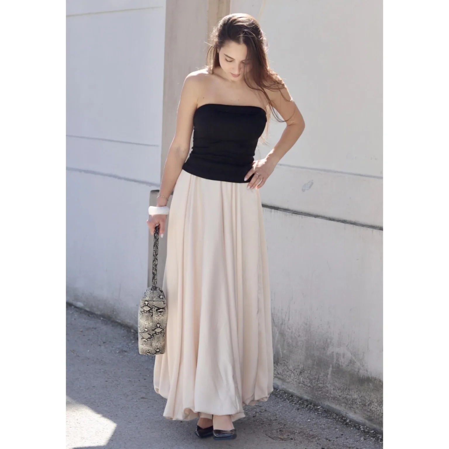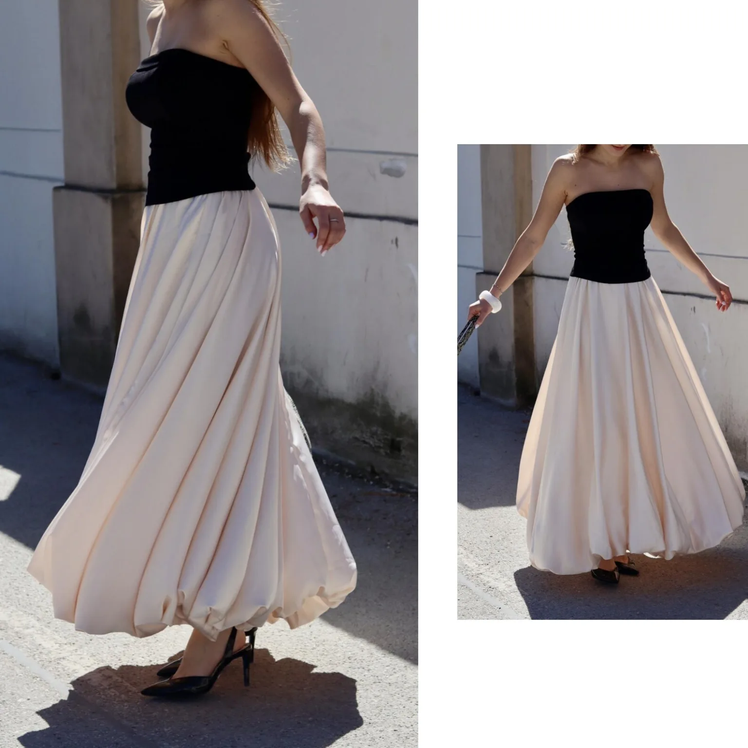 Create a dramatic and elegant wardrobe staple with this Bubble Hem Maxi Skirt Sewing Pattern, designed for sewing enthusiasts who love voluminous silhouettes and flowy movement. Because this design combines a high-waisted fit with a structured elastic waistband and a full-length bubble hem, it allows you to create a statement skirt that feels both modern and romantic.