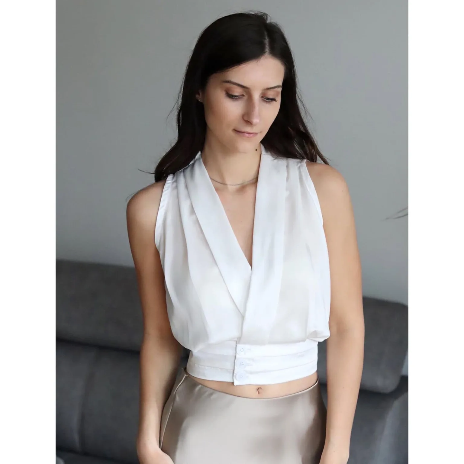 • Recommended Fabrics: Sateen, Charmeuse, Crepe back satin, Crepe de chine, Silks, Satin.