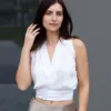 Sew a chic and stylish cropped button down top with this advanced-level PDF sewing pattern! Featuring a deep V-neckline, pleated design, and sleeveless cut, this blouse is perfect for sewing enthusiasts. The pattern includes sizes XXS to 7XL and is designed for medium to lightweight non-stretch woven fabrics. With a slightly cropped hemline and buttonhole closure, this pattern ensures a perfect fit for a variety of body types.