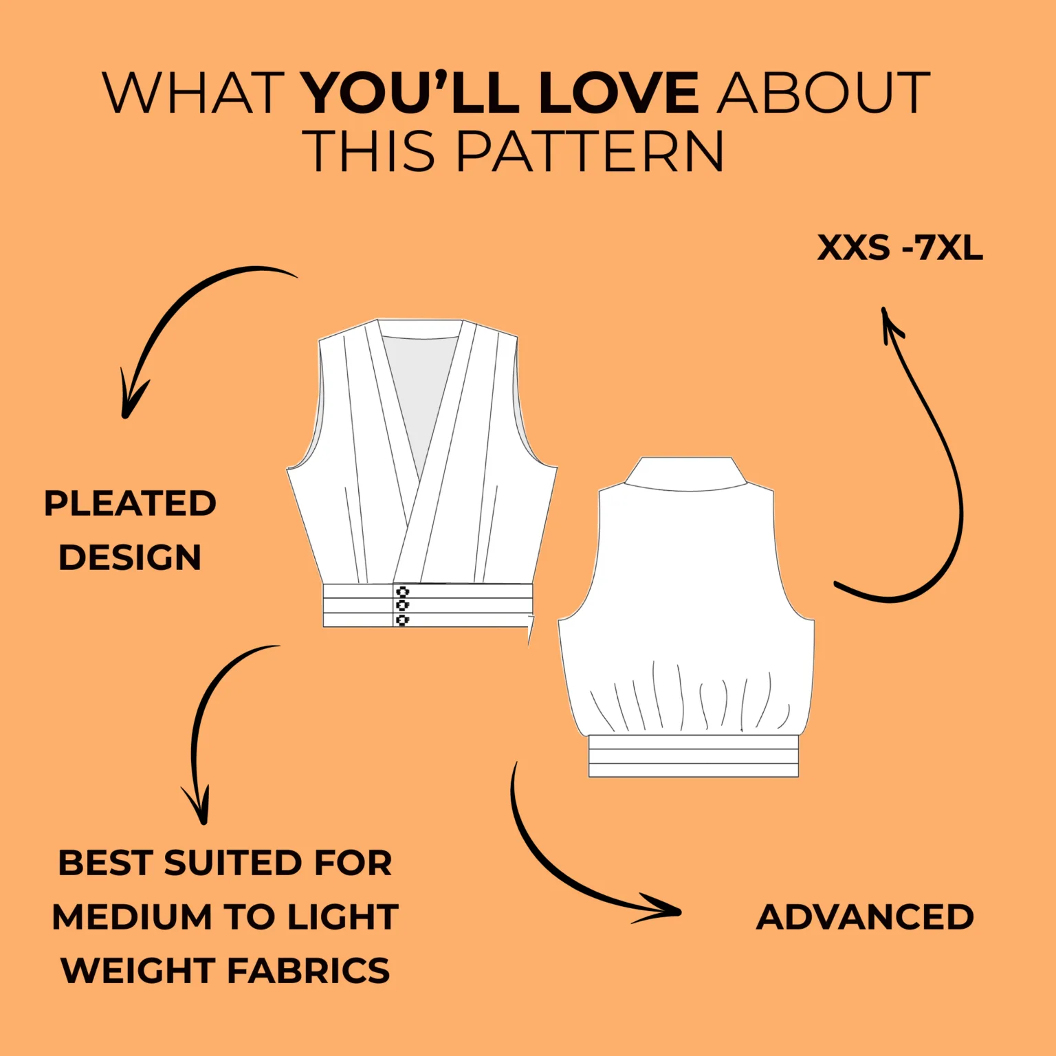 We take pride in delivering high-quality patterns and providing fast customer service. If you are not completely satisfied with this Cropped Button Down Top Pattern, contact us—we offer a 180-day money-back guarantee!