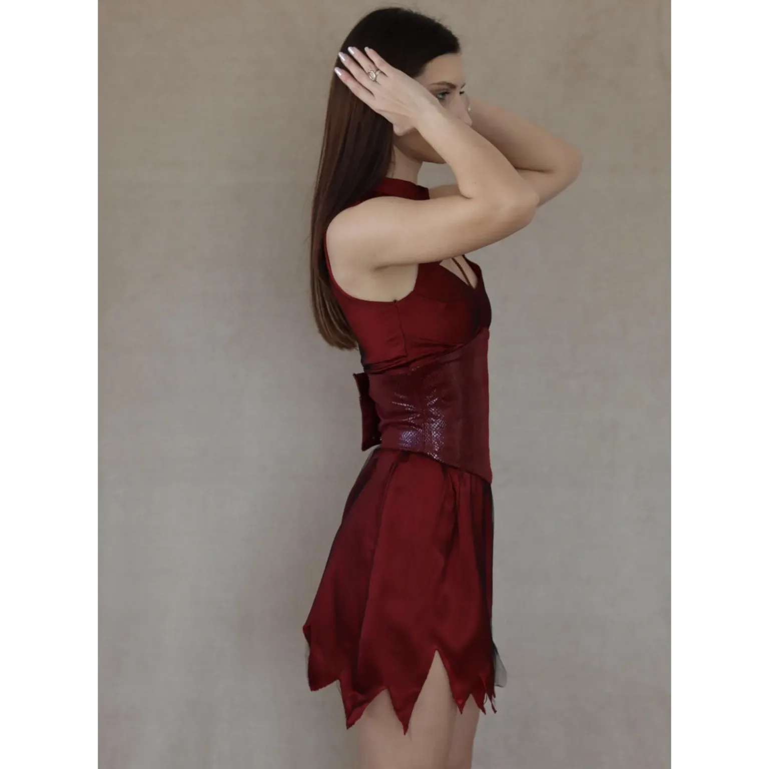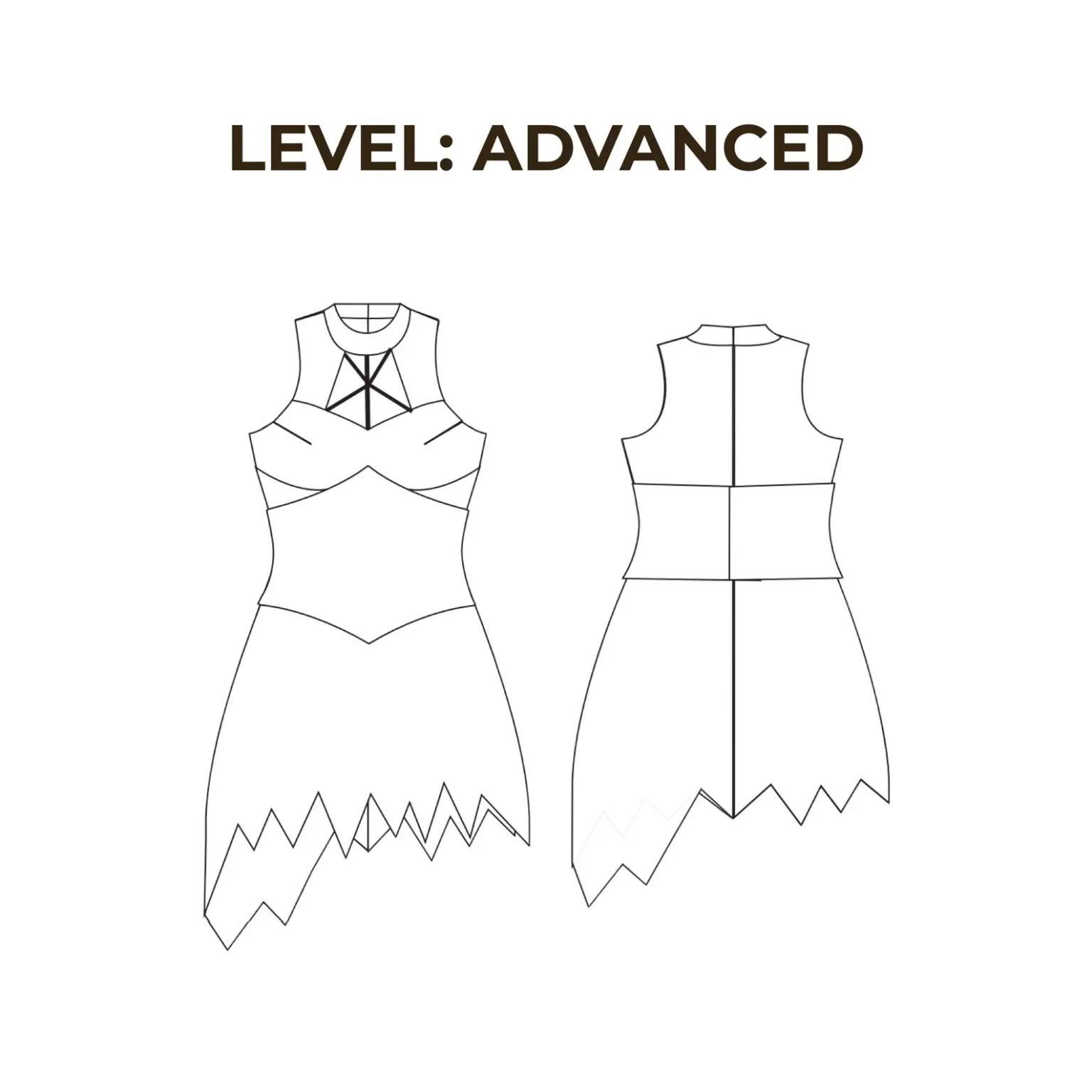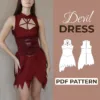 Create a bold and unforgettable look with this Devil Costume Dress Sewing Pattern, designed especially for advanced sewing enthusiasts who love dramatic cosplay pieces with strong structure and high-impact detail. Because this design blends sharp tailoring with flowing overlay elements, you can confidently craft a statement mini dress perfect for conventions, themed events, performances, and costume photoshoots.