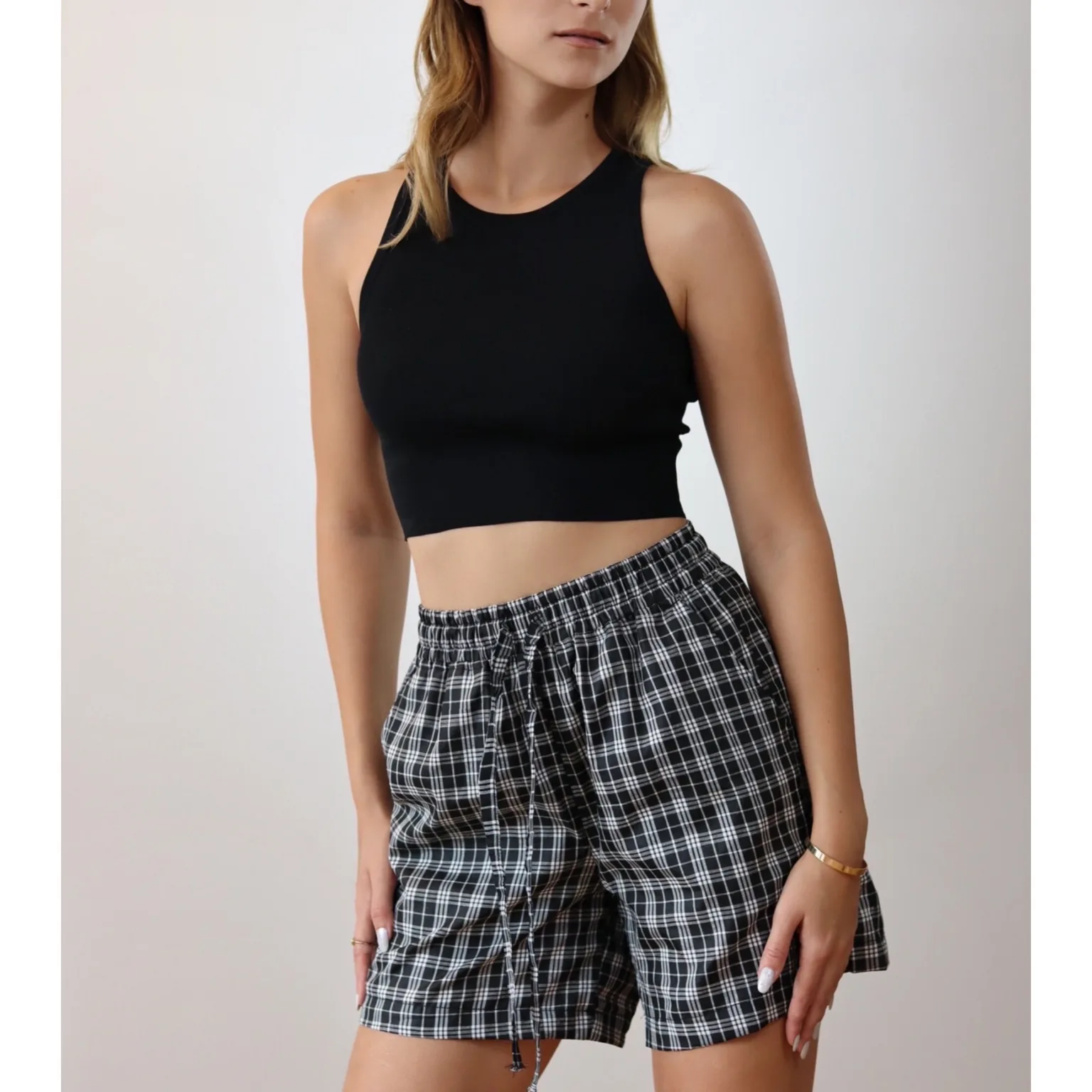 Discover the drawstring shorts sewing pattern designed for beginners! This digital PDF pattern features an elastic waistband and a drawstring closure for a comfortable fit.