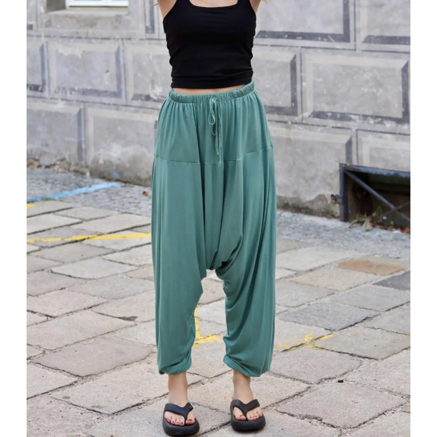 Bring comfort and style to your wardrobe with this Drop Crotch Pants Sewing Pattern! Designed for beginners, this digital PDF pattern allows you to create wide-leg, hippie-inspired pants with a relaxed, flattering fit. With an elastic waistband, elastic at the ankles, deep pockets, and a stylish yoke detail, these pants are as functional as they are fashionable.