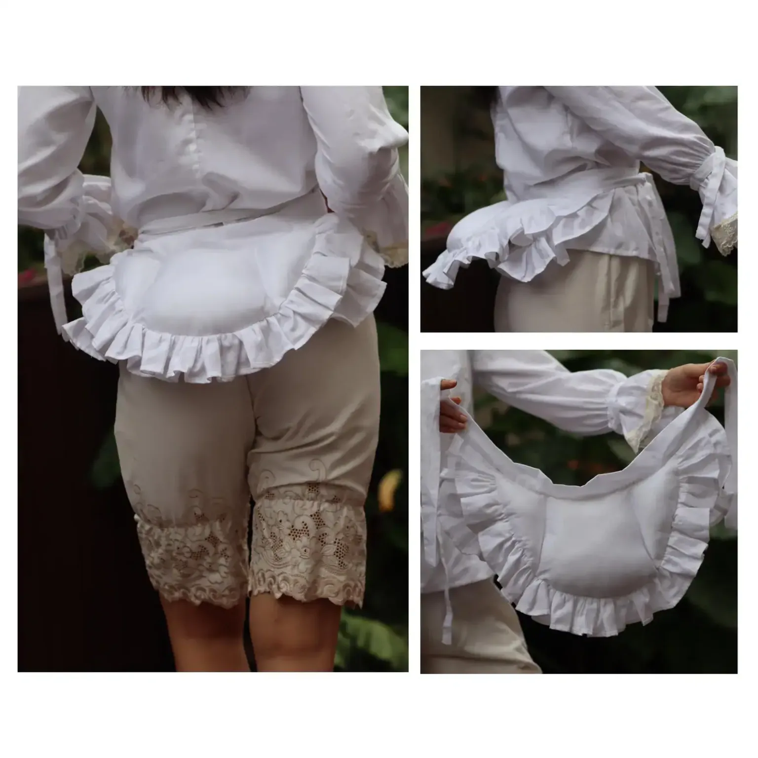 ✔ Bustle Pad – Features ruffles and ties to create volume and enhance the historical silhouette.