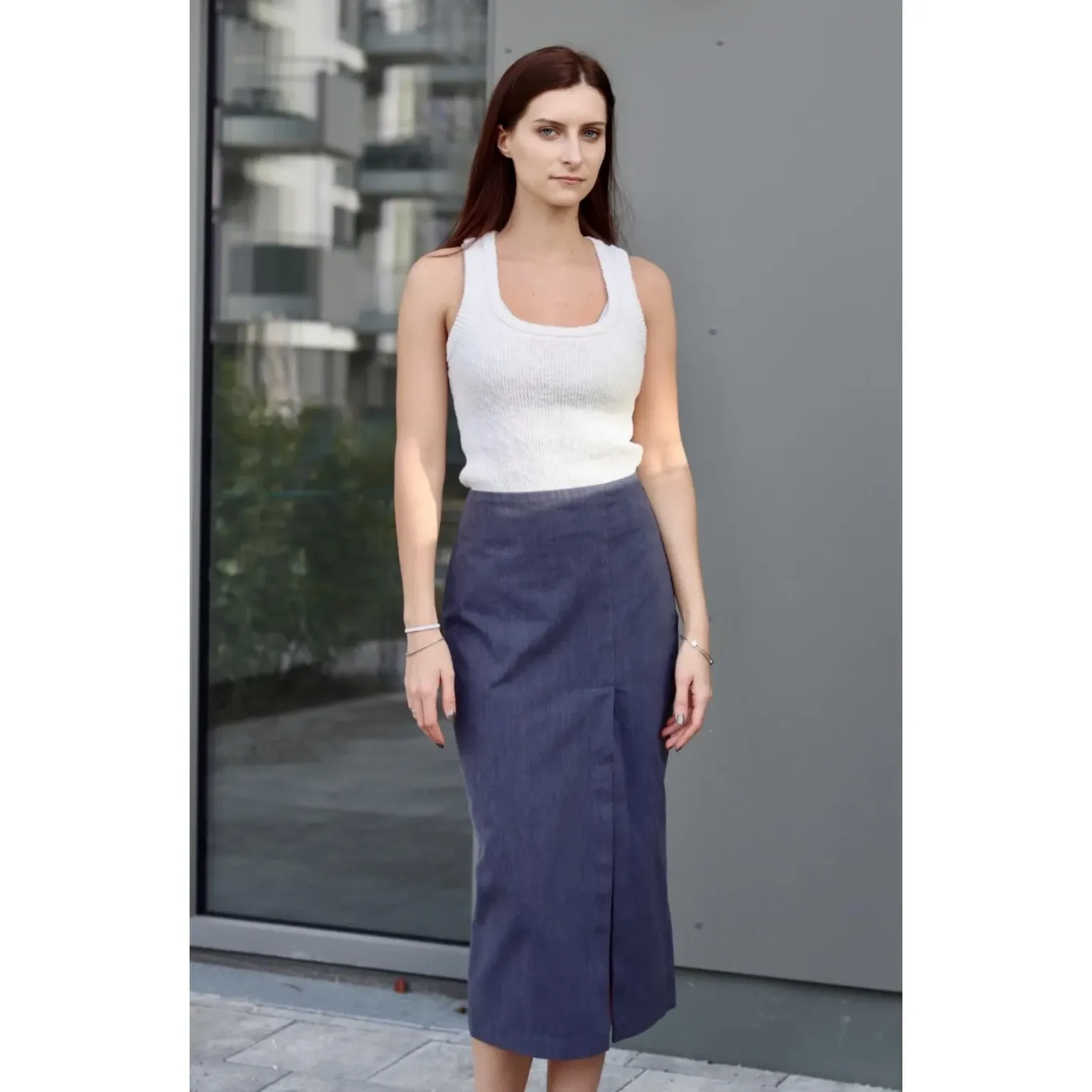 This Front Slit Pencil Skirt Sewing Pattern allows you to create a sleek, modern pencil skirt with professional finishes and a flattering silhouette.