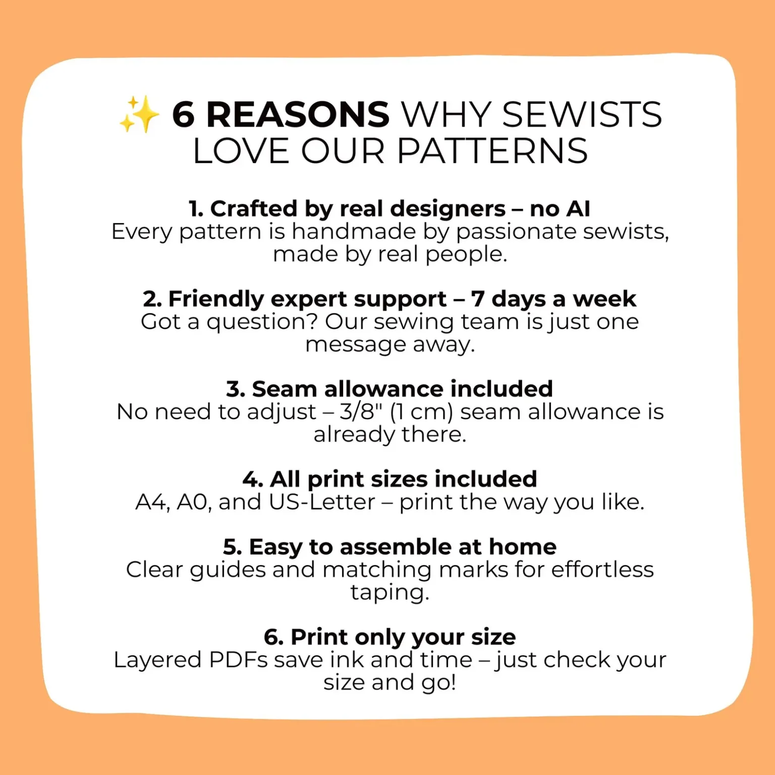 This pattern works best with medium-weight woven fabrics that hold structure.