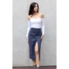 Consequently, this skirt works beautifully for formal events, office wear, fashion-forward styling, and photo-ready outfits.