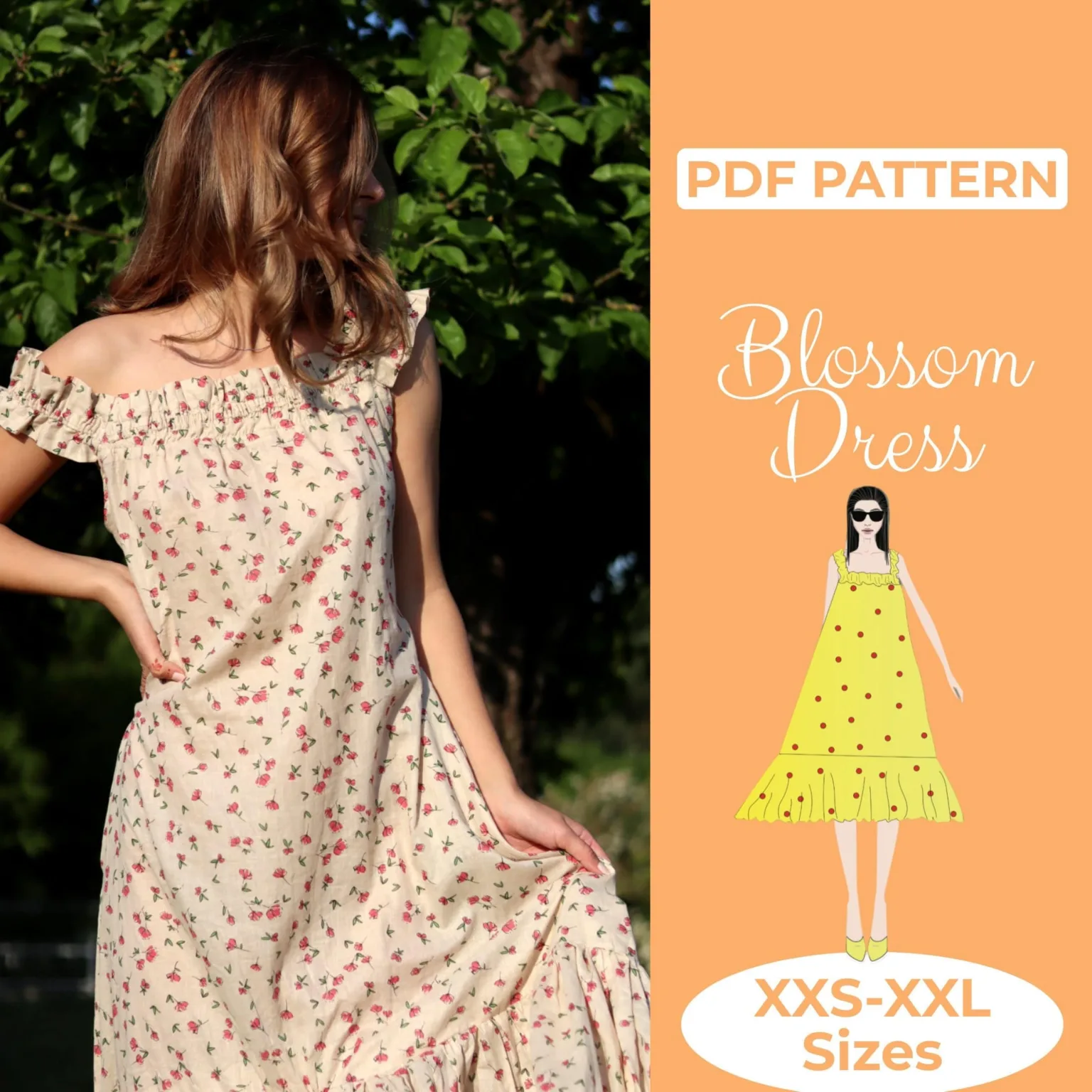 This gathered dress sewing pattern is perfect for creating a stylish and comfortable summer look! Designed for beginners, this pattern includes sizes XXS to XXL and features a flowy silhouette that makes it ideal for warm weather. The PDF download is available in US Letter, A4, or A0 sizes, allowing you to print it conveniently at home or at your local print shop.