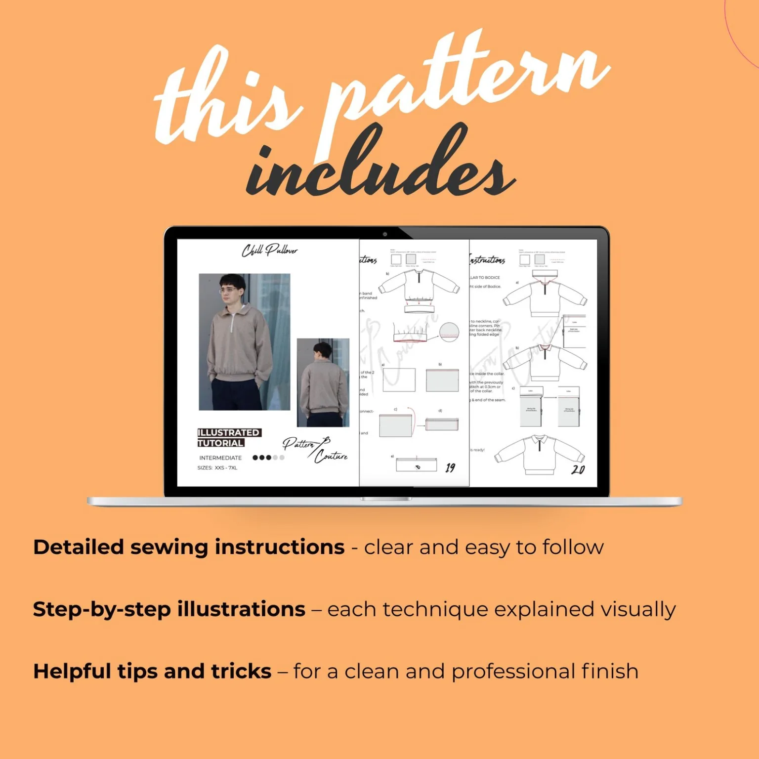 Includes full-size, layered pattern pieces plus a step-by-step illustrated tutorial.