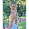 These fabrics create a soft, natural drape that enhances the elegant cowl neckline and halter style.