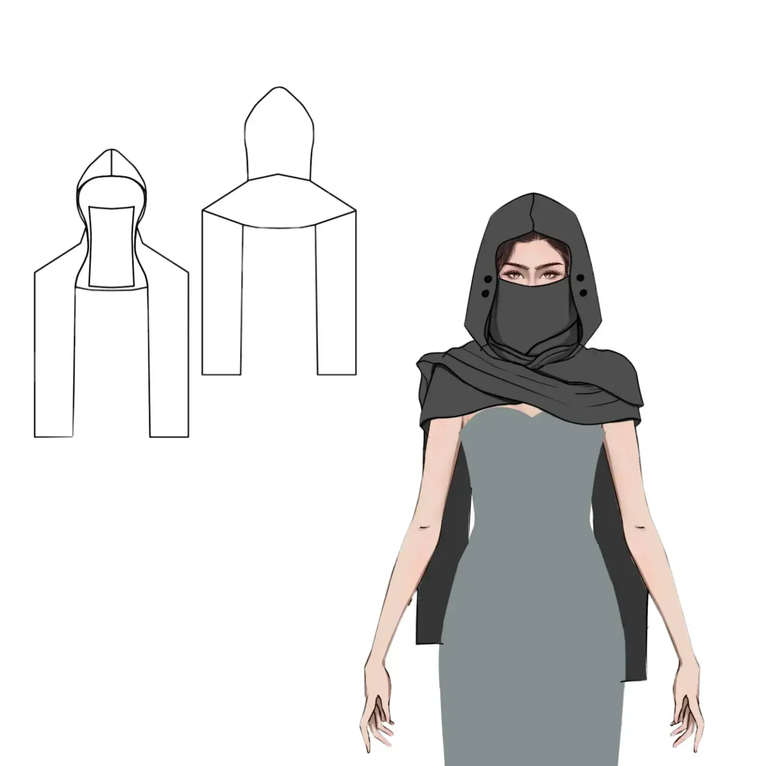 Step into fantasy or elevate your cold-weather wardrobe with the Hooded Cowl Scarf – a dramatic and functional design that combines the elegance of a flowing scarf with the cozy coverage of an oversized hood. This hooded cowl scarf sewing pattern is ideal for advanced sewists looking for a unique and eye-catching project, whether for cosplay, costume-making, or statement layering.