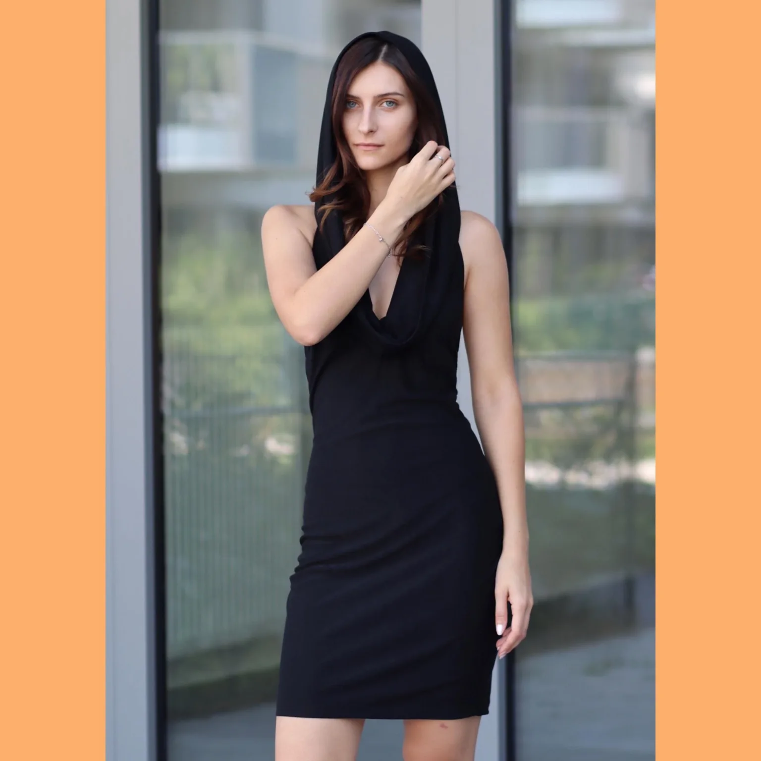 Craft a stunning, modern look with this Hoodie Dress Sewing Pattern, perfect for sewists who love combining style and comfort. Designed for adventurous beginners, this digital PDF pattern guides you through each step to create a sleeveless, hooded bodycon dress with a cowl hood and an open back. Available in sizes XXS to XXXL, it features layered PDFs, so you can print only the size you need. This convenient feature saves both time and paper.