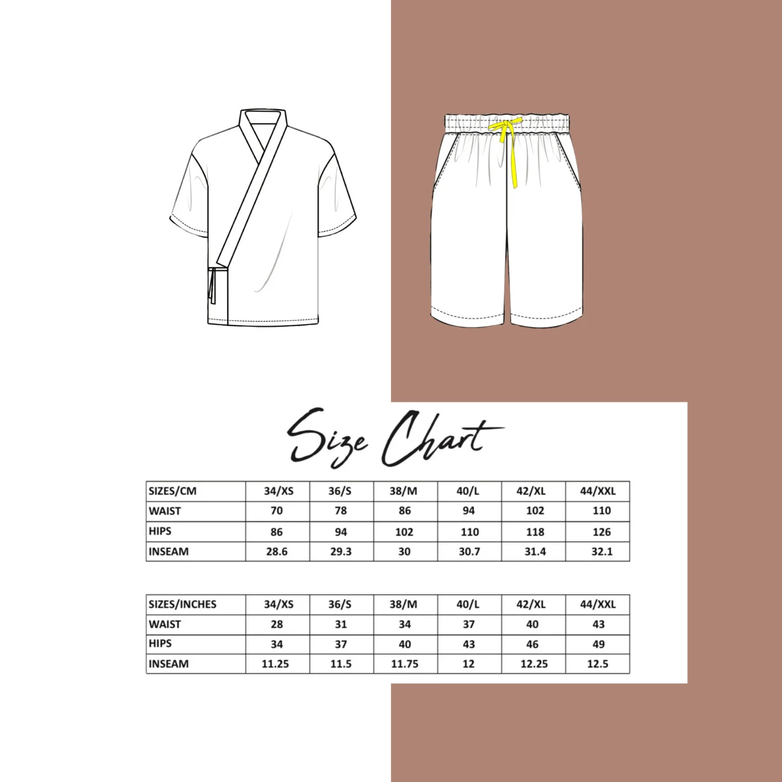 Unlock the beauty of traditional fashion with our jinbei kimono sewing pattern set. This unique pattern bundle includes both the Kimono Shirt and the Shorts, designed for intermediate sewers seeking to create a stylish ensemble inspired by Japanese culture.