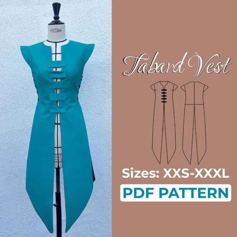 The ladies tabard pattern is a versatile cosplay sewing pattern designed for intermediate to advanced sewists. This sideless tabard perfectly captures the essence of medieval, fantasy, and LARP characters. Whether you’re crafting a noble knight, a warrior from a distant realm, or a mystical sorceress, this tabard adds authenticity and intricate detail to your costume. With its historical accuracy and beautiful structure, it’s ideal for cosplay conventions, reenactments, or fantasy-themed events.