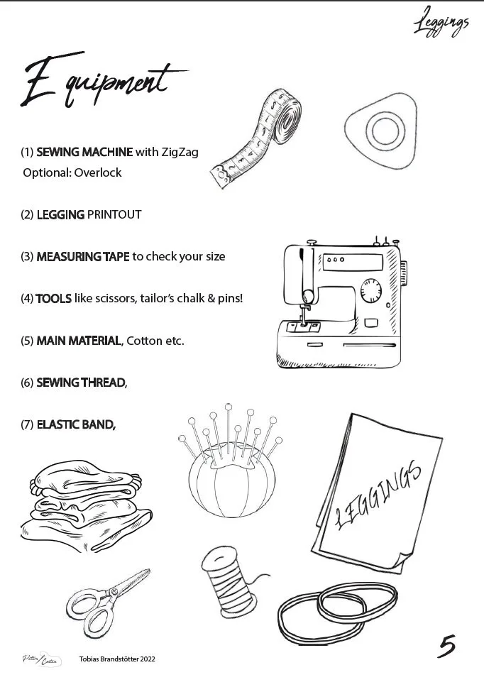 You’ll need only 1 1/8 yards of fabric and 1 yard of 1/2″ elastic to create these leggings. Recommended fabrics include 4-way stretch materials like athletic knits, cotton lycra, or polyester/elastane jerseys. The leggings sewing pattern is designed for maximum comfort and durability, making it a great addition to your wardrobe.