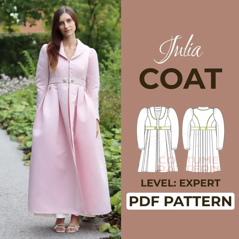 Create a striking, tailored statement piece with this Long Coat Dress Sewing Pattern, designed for advanced sewing enthusiasts who want structure, elegance, and couture-inspired details. This sophisticated design blends a coat-style bodice with a flowing skirt, resulting in a polished garment suitable for formal events, workwear, historical-inspired fashion, or statement outfits. Moreover, features such as princess seams, a shawl collar, decorative buttons, and precise facing finishes elevate the overall look and fit.