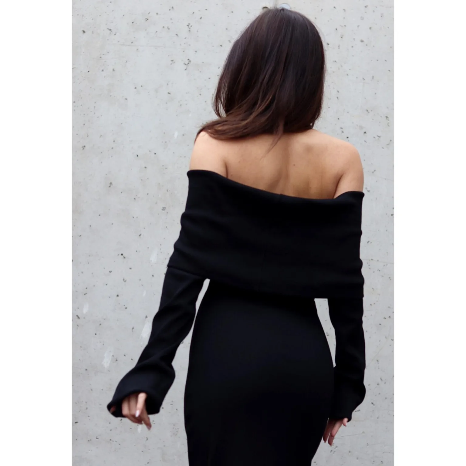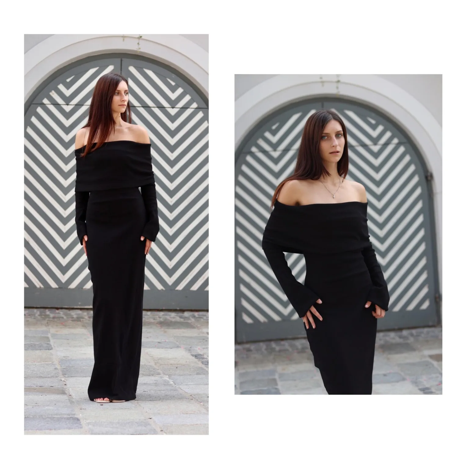 Sew your own stunning gown with this elegant Long Sleeve Evening Dress Pattern, perfect for adventurous beginners ready to create something glamorous yet achievable. With an off-the-shoulder neckline, long fitted sleeves, and a body-hugging silhouette, this floor-length dress makes a striking statement for evening wear, parties, or formal events.