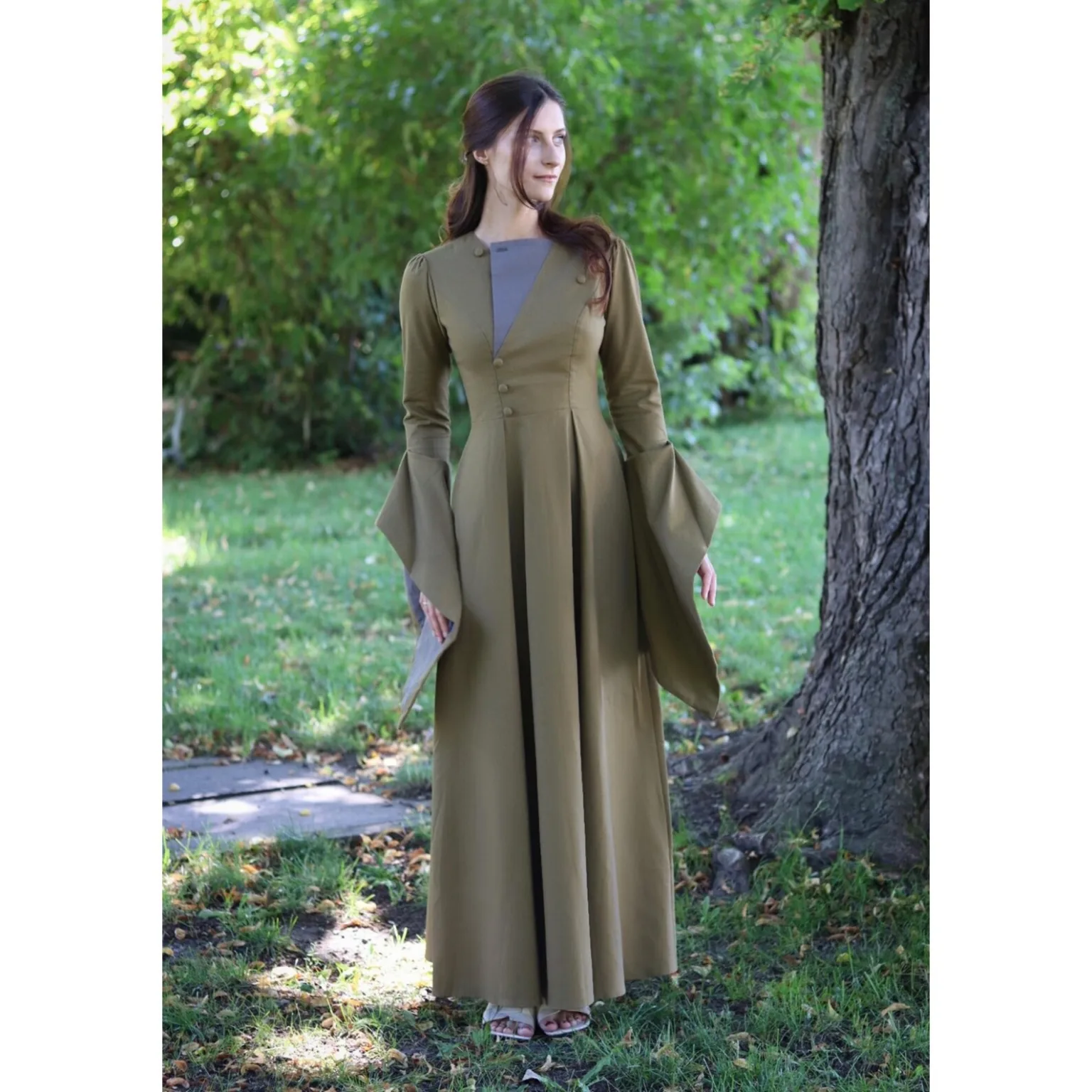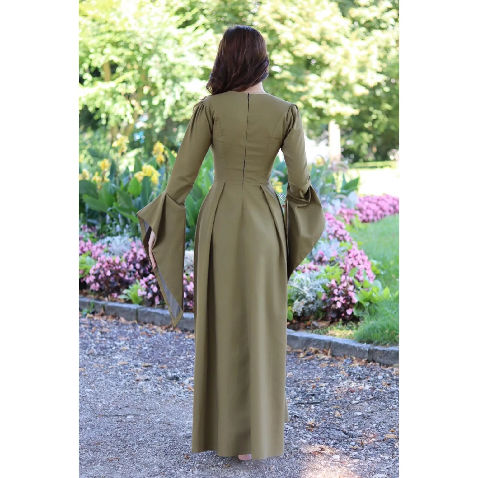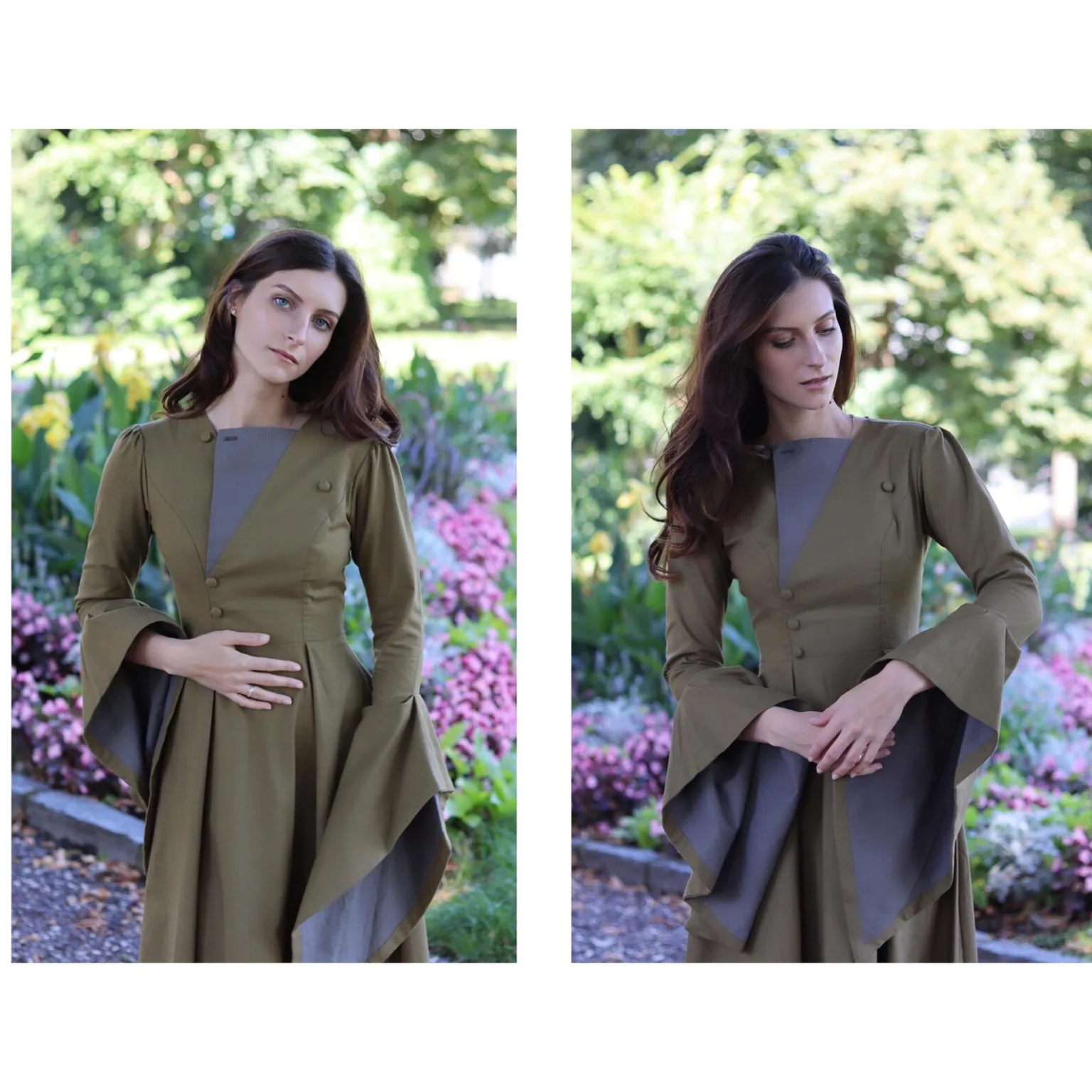Unleash your creativity with this Medieval Fantasy Dress Sewing Pattern, a stunning full-length gown design perfect for cosplay, costumes, and fairytale-inspired fashion. Designed for advanced sewists, this detailed sewing pattern blends historical elegance with modern construction. The finished dress features beautifully shaped princess seams, romantic flounced sleeves with trim, and a pleated skirt that moves gracefully with every step.