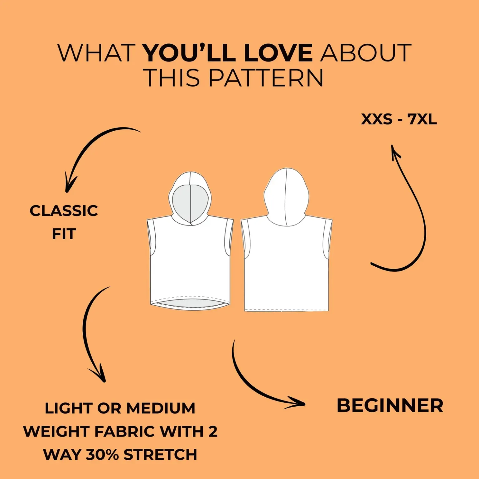 This men’s sleeveless hoodie and shorts set pattern makes it easy to sew a comfortable modern outfit using stretch fabrics with at least 30% 2-way stretch and good recovery. With clear instructions and fast customer service you’ll enjoy a smooth trouble-free sewing experience from start to finish.