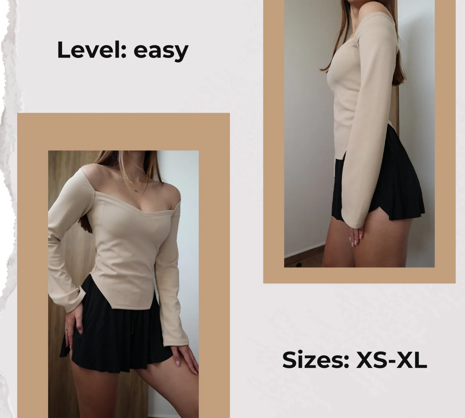 This off the shoulder top pattern is perfect for sewists of all skill levels. Whether you’re a beginner or an experienced sewist, this long sleeve shirt sewing pattern offers a fun and stylish project. The pattern includes sizes XS to XL, and all seam allowances are built in, so you can start sewing immediately. You’ll receive the pattern as an instant digital PDF download, available in US-Letter, A4, or A0 formats, making it convenient to print at home or at any local print shop.