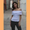 This off shoulder top pattern features a crop length, making it ideal for warm weather and layering with high-waisted bottoms. Available in sizes XXS to XXXL, this pattern accommodates a range of body types.