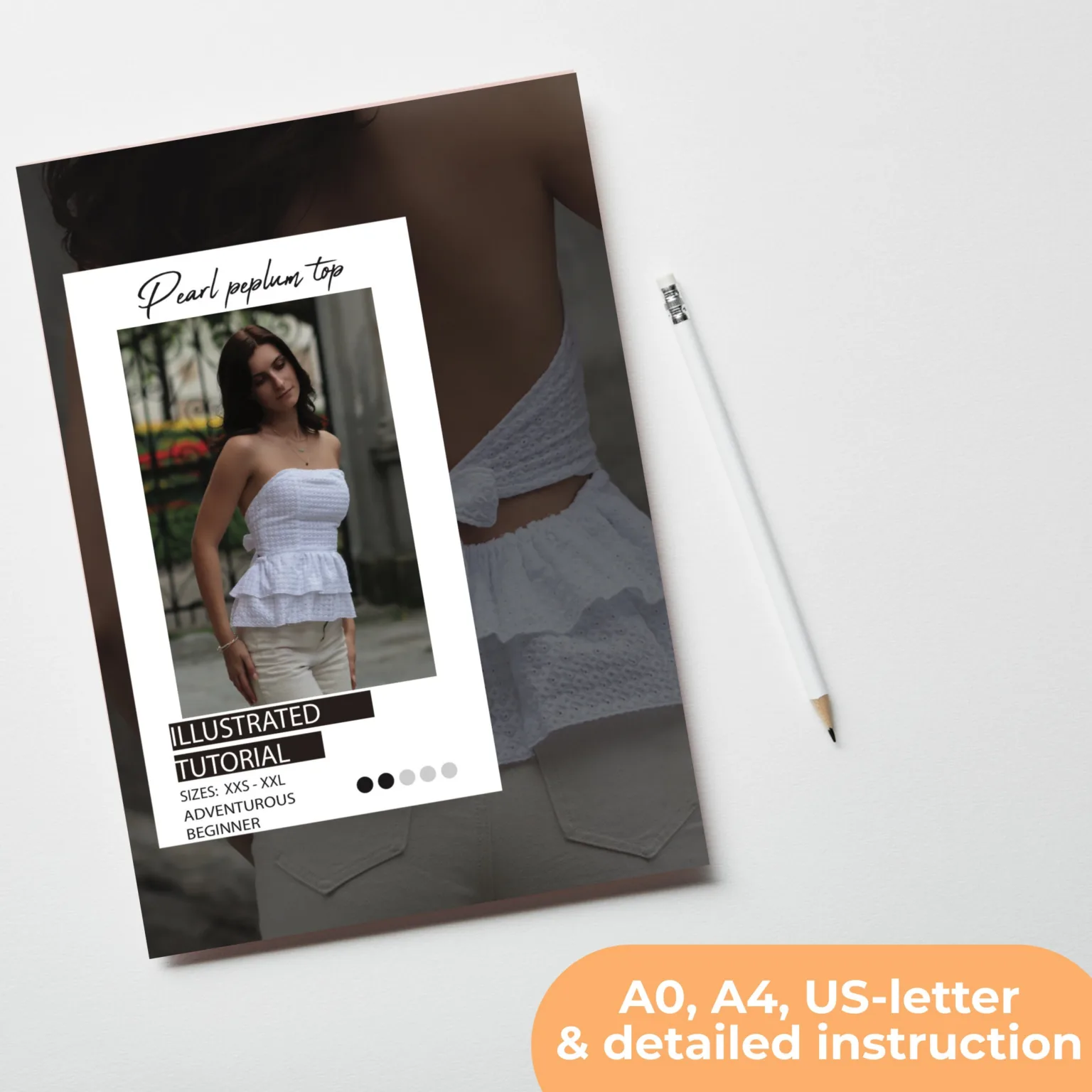 This pattern includes full-size, layered print-at-home pattern pieces in US Letter, A4, and AO formats, along with a step-by-step tutorial featuring detailed illustrations. This Peplum Top Sewing Pattern is designed for easy assembly, making it a great project for beginners looking to enhance their sewing skills.