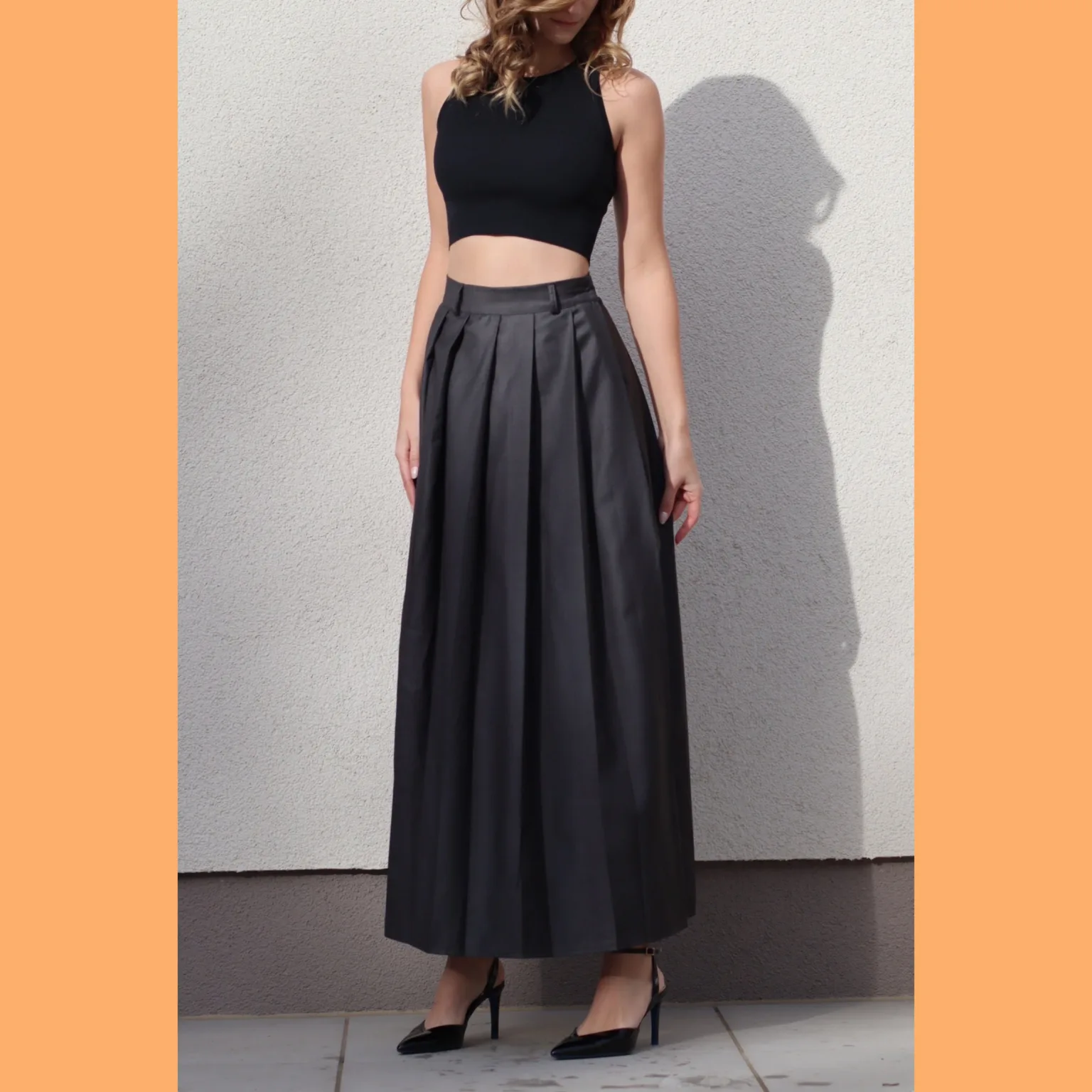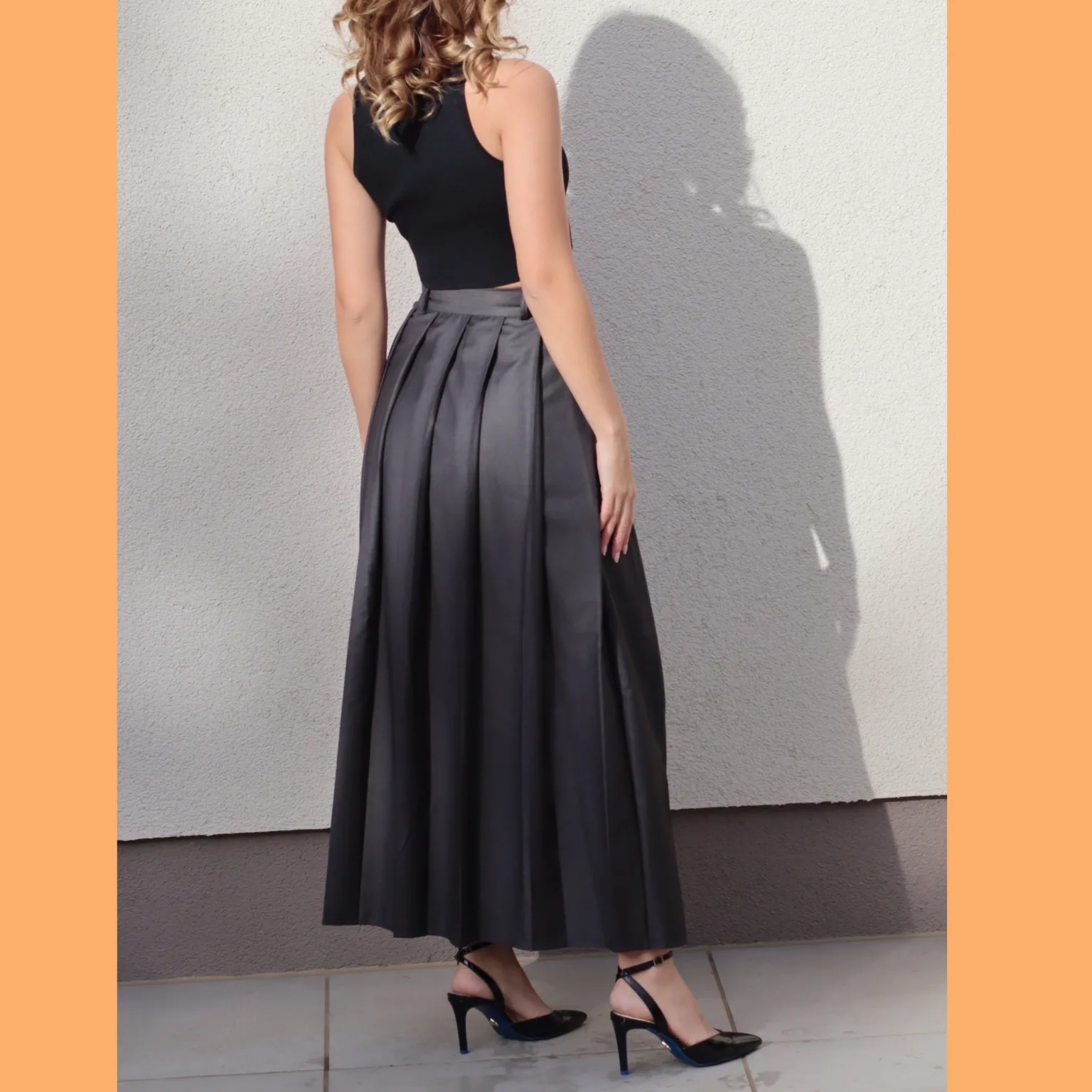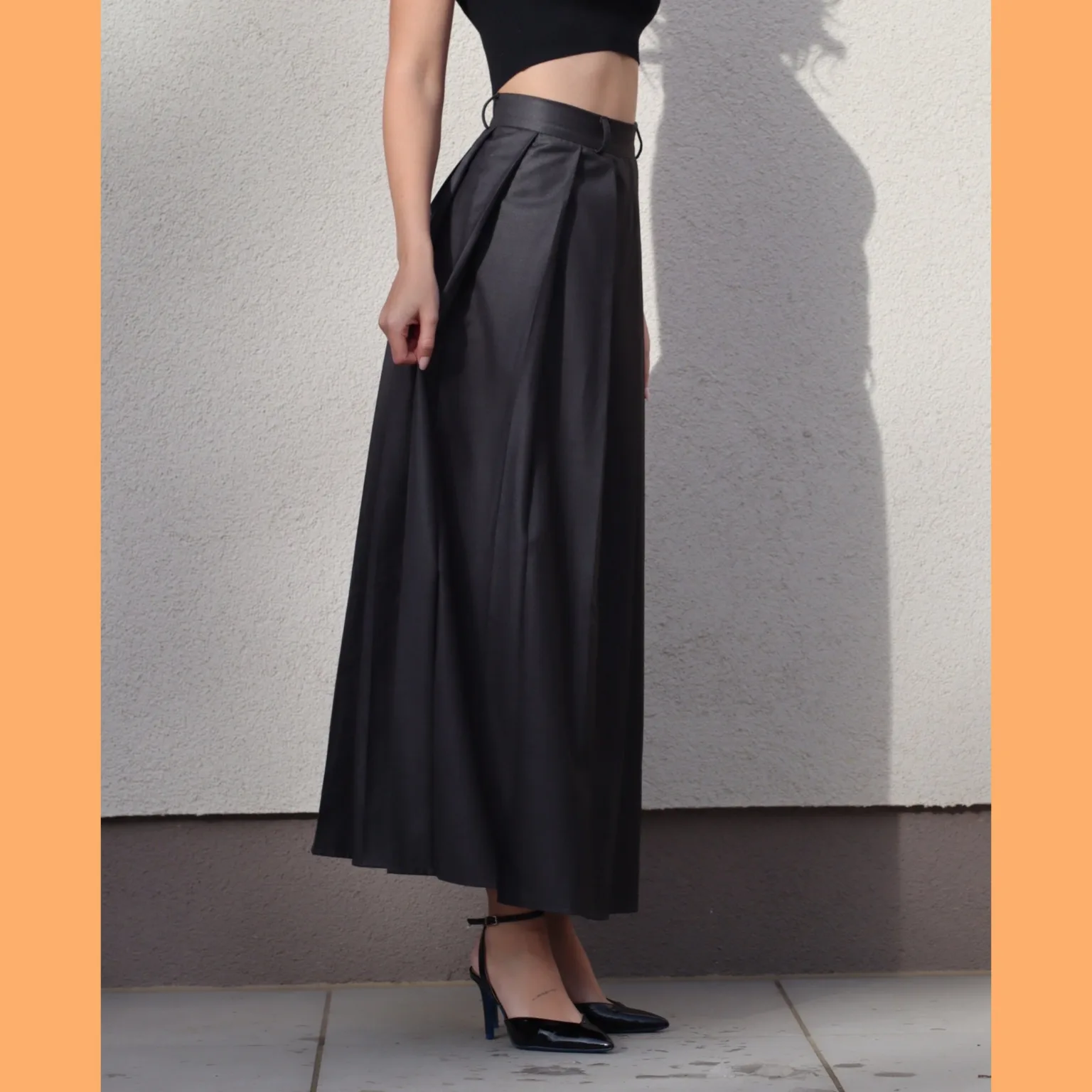 Looking for a pleated skirt sewing pattern? This digital PDF pattern is perfect for sewing a classic pleated skirt in a range of sizes from XXS to XXXL. Featuring a side seam zipper closure, a fully pleated design, and a flattering waistband, this midi-length skirt is ideal for woven fabrics like cotton, linen, and denim.