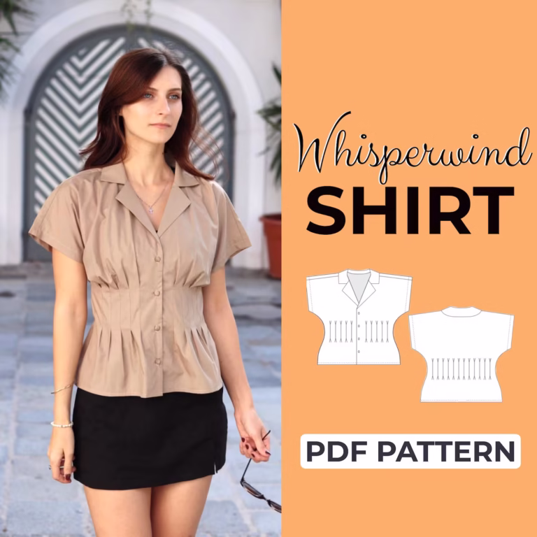 Because the design uses light to medium-weight woven fabrics, the blouse drapes softly while maintaining structure. Moreover, the faced neckline delivers a clean interior finish, while the unlined construction keeps the garment breathable and comfortable. With clear illustrated instructions and layered PDF files, the Pleated Waist Blouse Sewing Pattern guides you confidently from cutting to final pressing. Additionally, inclusive sizing from XXS to 7XL ensures flexibility across many body types, making this pattern both practical and rewarding to sew.