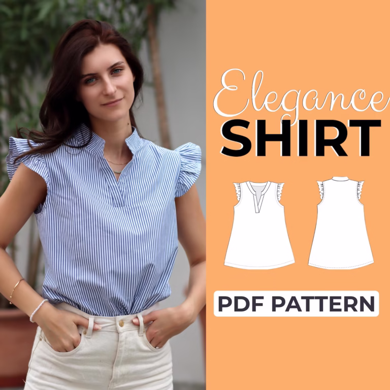 This pattern features a flattering V-neckline, elegant ruffled sleeves, a shirt-style silhouette, and a clean collar design. The layered file format allows you to print only the size you need, and it’s compatible with A0, A4, and US Letter paper sizes.
