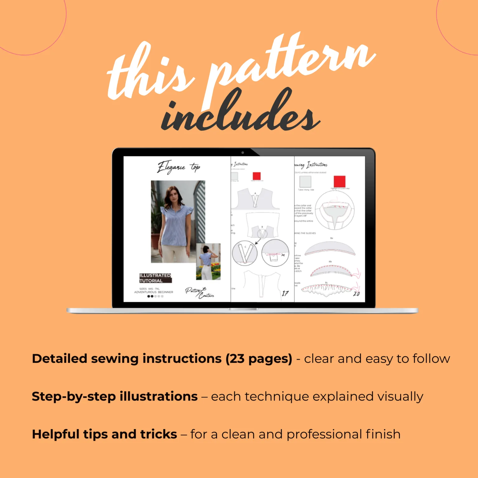 Create your own stylish and breezy blouse with this Ruffle Sleeve Blouse Pattern, ideal for adventurous beginners looking to expand their skills. This is a digital PDF sewing pattern, not a paper pattern, and it comes with detailed illustrated instructions to guide you through each step with ease.
