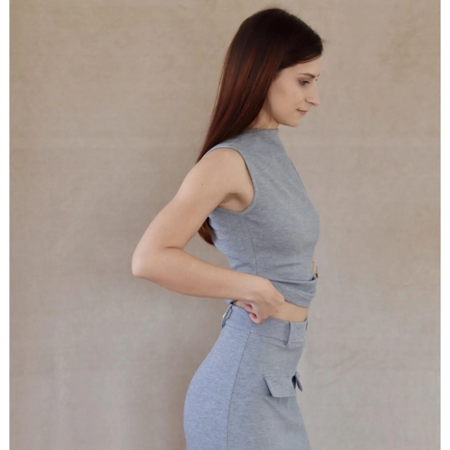 Moreover, this Sleeveless High Neck Top Sewing Pattern provides a tailored fit that flatters the shoulders and upper torso while maintaining comfort and flexibility through stretch fabrics. The high neckline offers an elegant, modern style perfect for layering, pairing with skirts or pants, or wearing as a standalone statement piece. As a result, you can confidently sew a top suitable for formal, office, casual, or fashion-forward outfits.