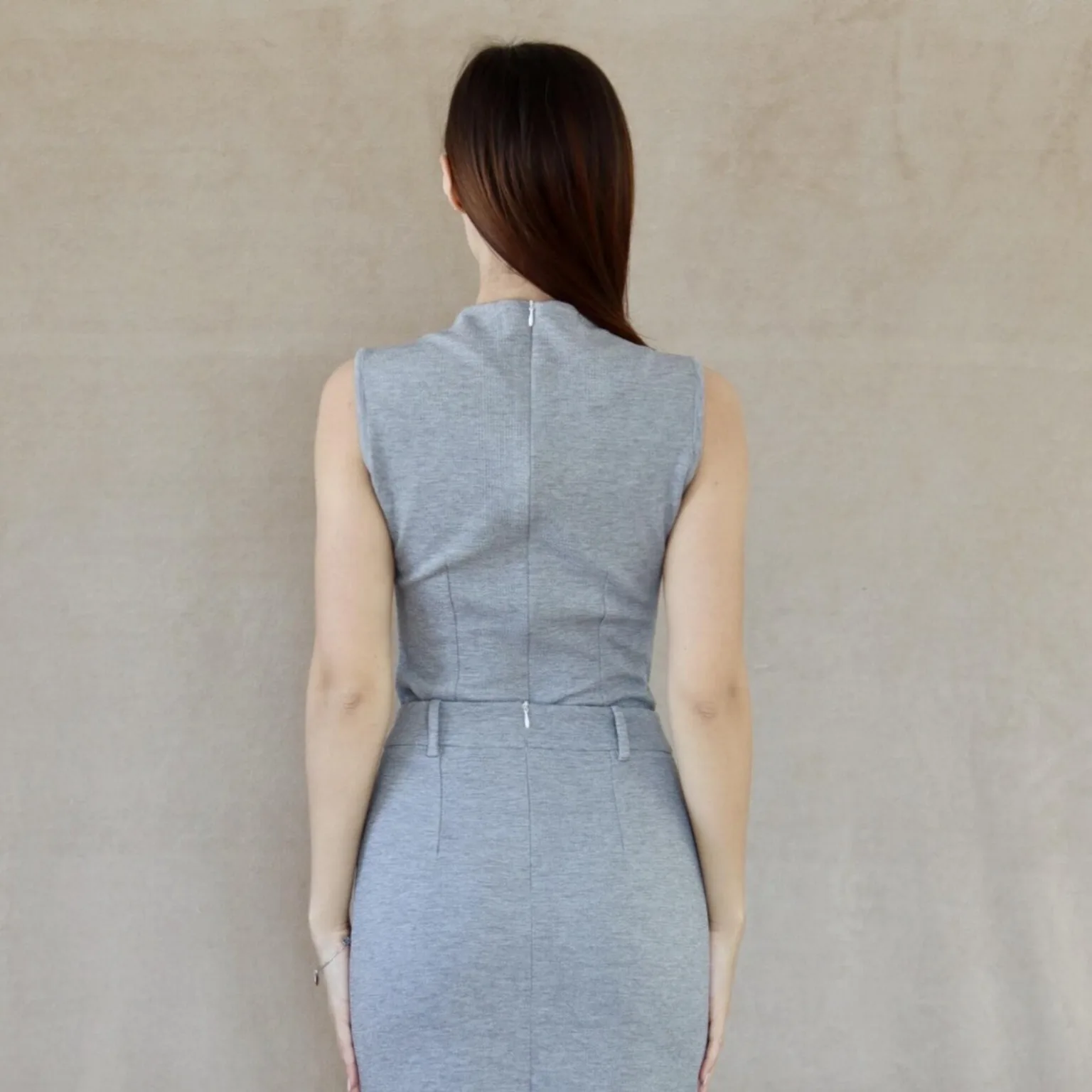 Create a polished, versatile garment with this Sleeveless High Neck Top Sewing Pattern, designed for sewing enthusiasts who love tailored, fitted knitwear. Because clean lines, structured silhouettes, and precise finishes define professional knit tops, this pattern features a sleeveless bodice, high neckline, and back zipper closure, allowing you to achieve a sleek, sophisticated look.