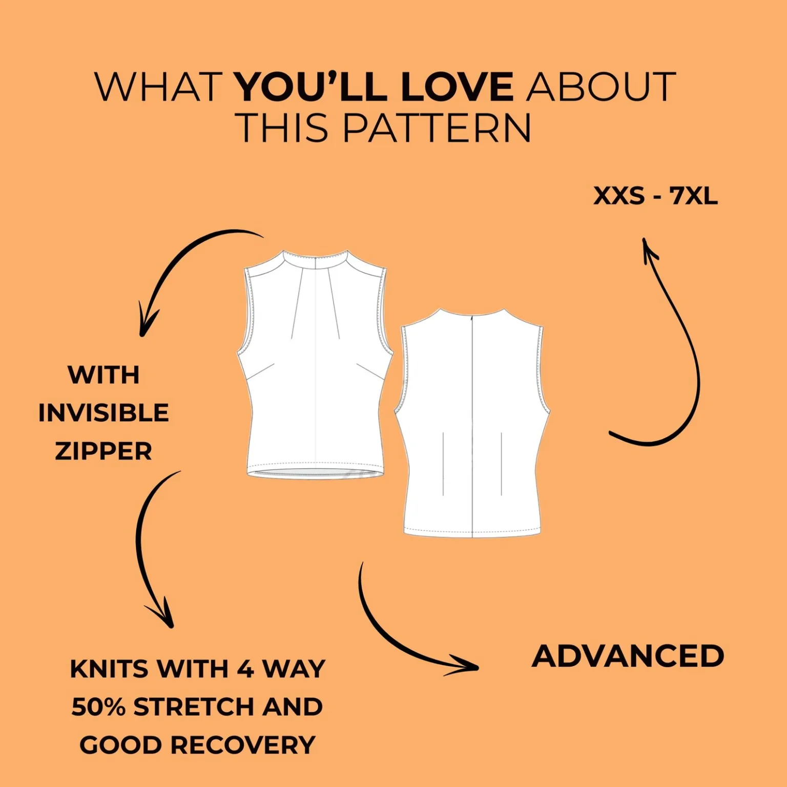 • Recommended Fabrics: Knits with 4-way stretch (approx. 50%) and good recovery, such as: