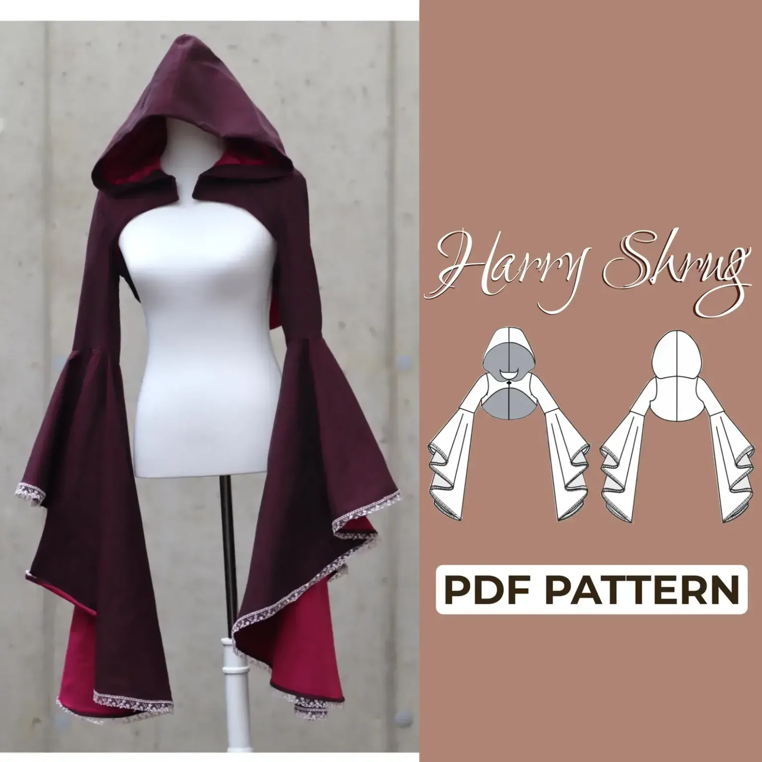 Create an enchanting Sorceress Hooded Bolero with this intermediate-level sewing pattern! This digital PDF pattern includes sizes XXS to XXXL and features a large dramatic hood, elegant circular sleeve flounce, a short bodice, and a stylish brooch closure. Perfect for sewing enthusiasts who love fantasy-inspired fashion, cosplay, or unique wardrobe pieces!