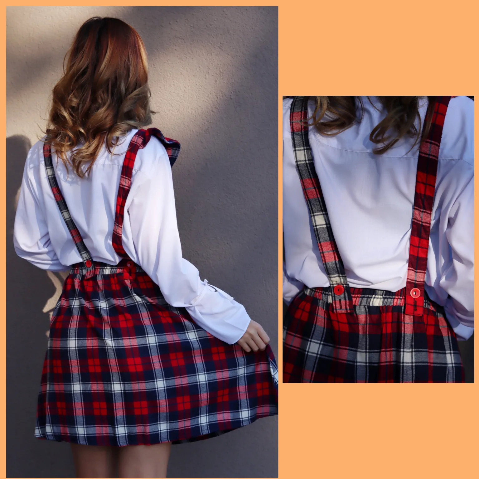 This suspender skirt pattern works best with medium-weight woven fabrics such as flannel, tartan plaid cotton, wool blend, brushed cotton, Tencel, gabardine, or light denim. Note: This pattern is not suitable for knit fabrics or those with stretch.