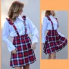The suspender skirt pattern is perfect for beginners looking to create a stylish high-waisted pinafore dress. This digital PDF pattern features a charming circle skirt design with shoulder ruffles and an elastic waist for a comfortable fit. The straps are secured by buttons, adding a delightful touch to your creation.