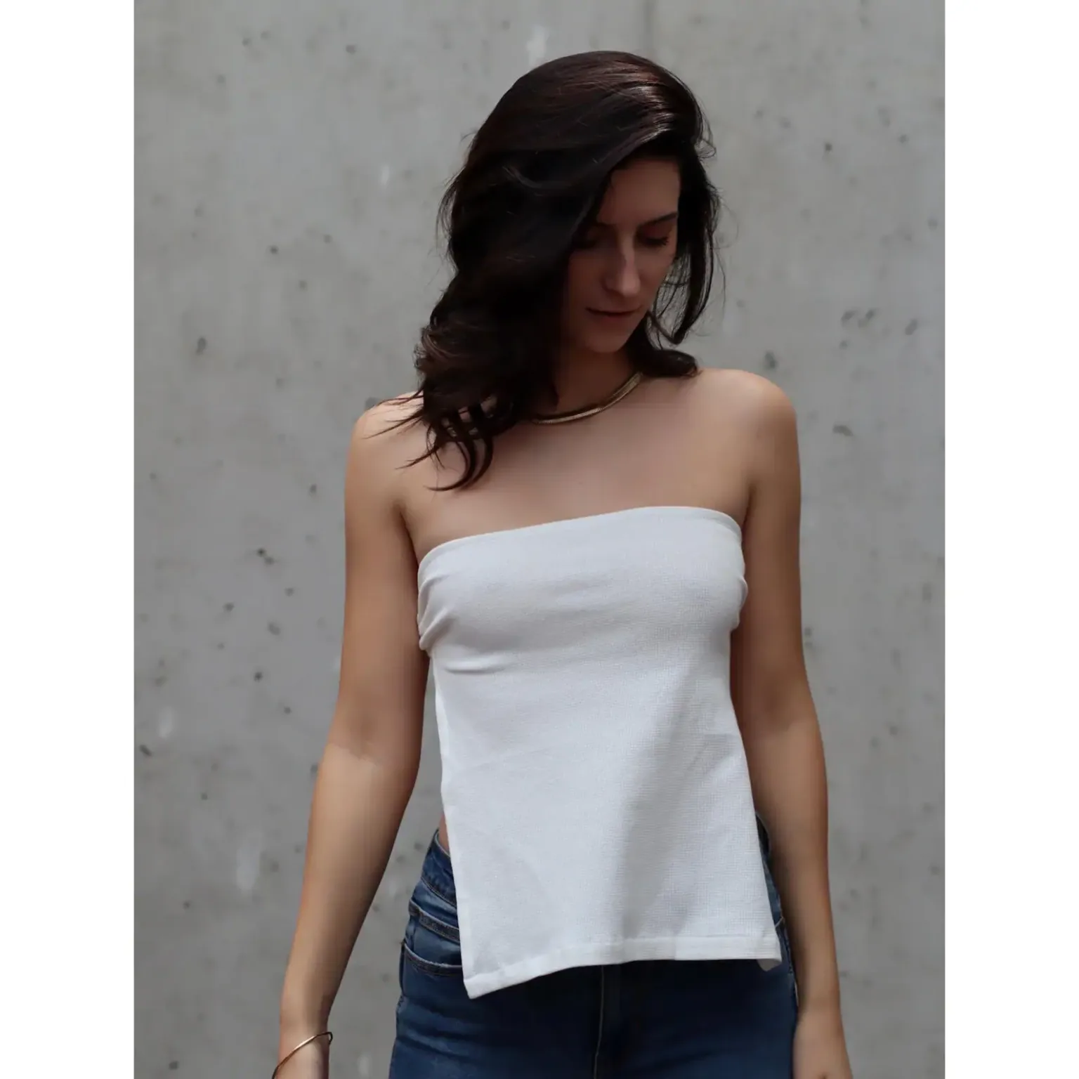 Strapless tube top with back tie closure