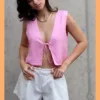 The tie front top vest pattern not only showcases a stylish design but also helps you enhance your sewing skills. Enjoy the rewarding process of creating your own fashion statement with this easy-to-follow pattern!