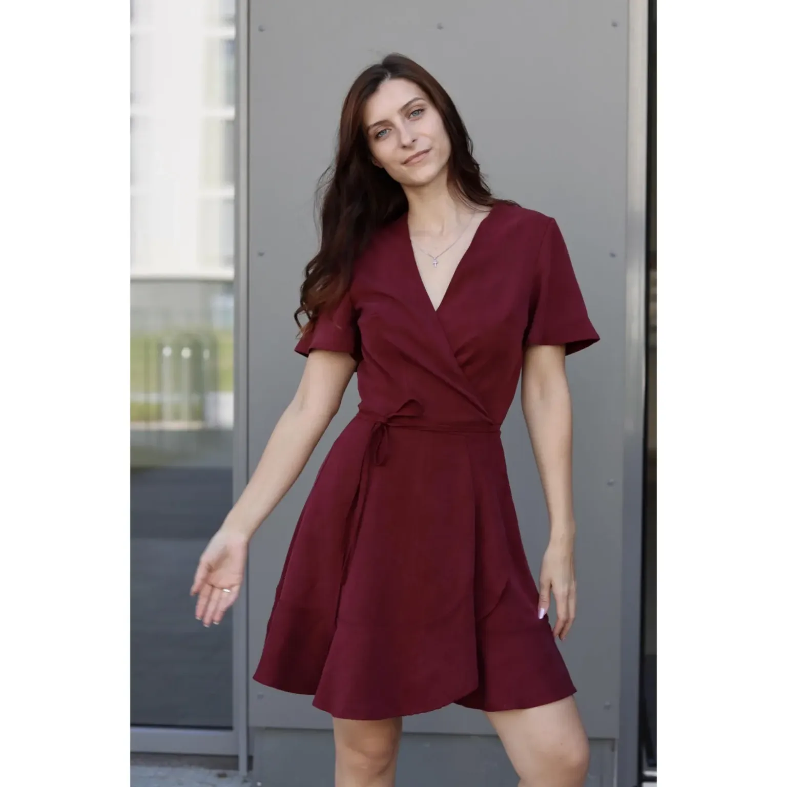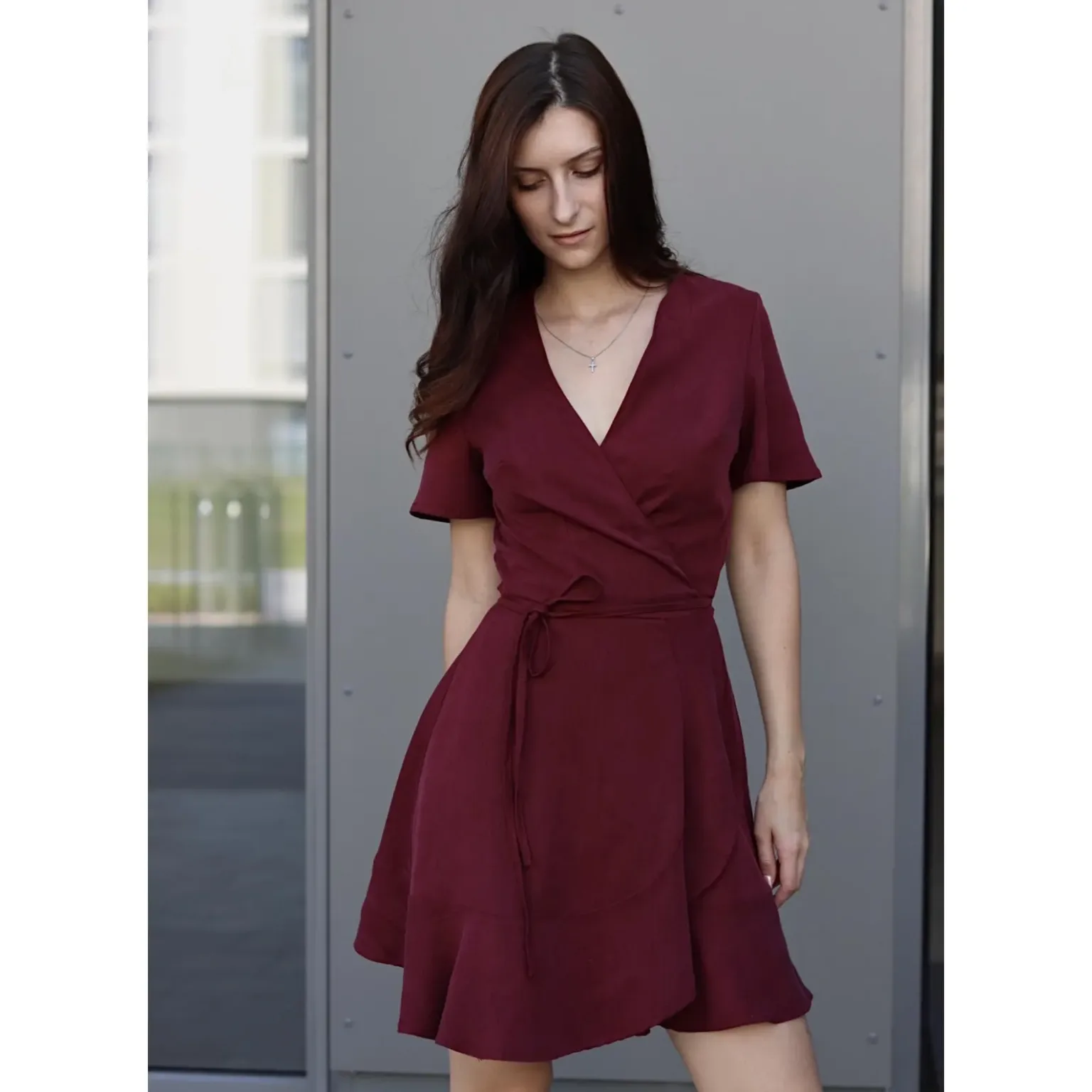 This Tie Waist Wrap Dress Pattern is best used with non-stretch woven fabrics, especially: