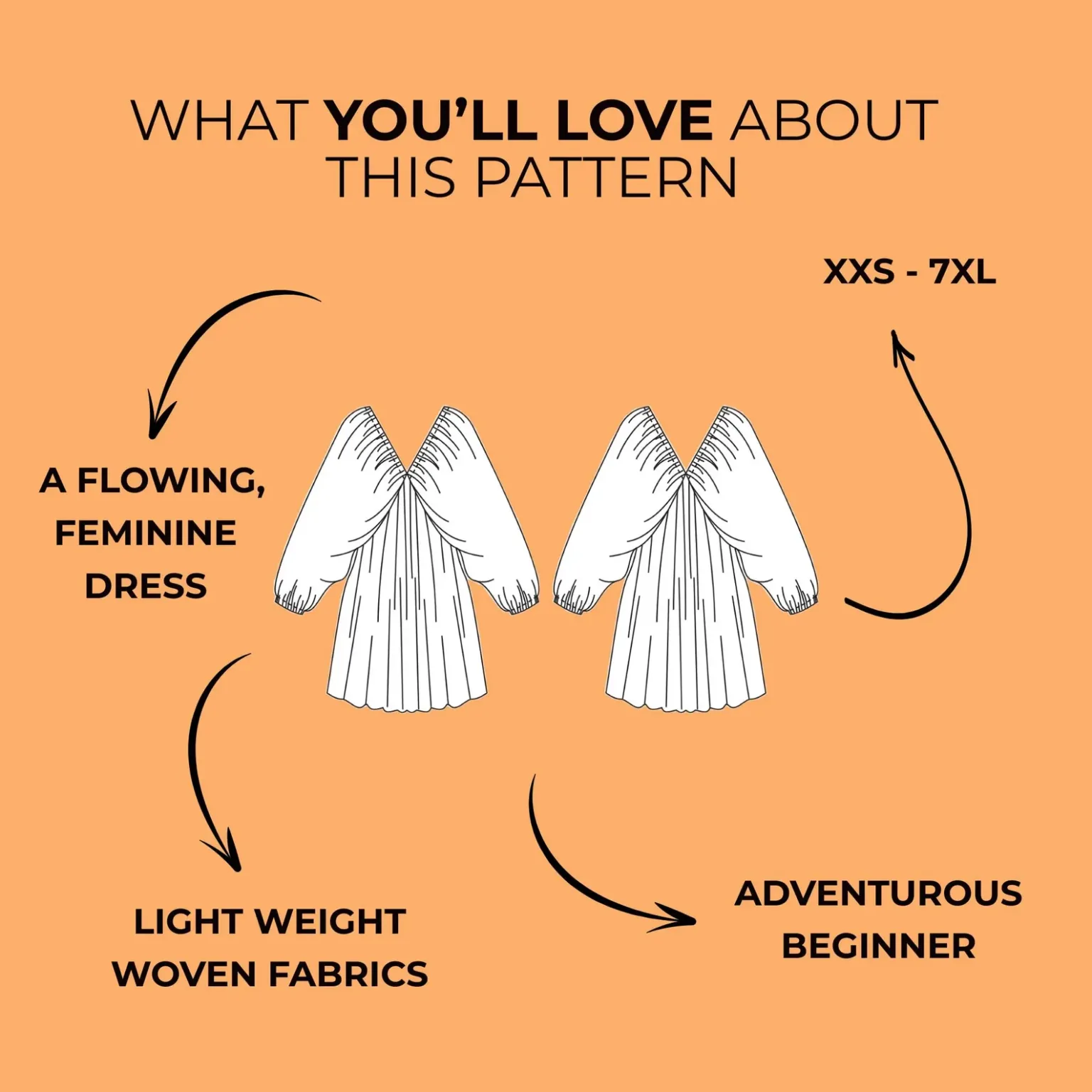 With its flattering V-neck, comfortable elastic details, and flowing silhouette, this dress works beautifully for both formal and casual occasions. The clear, illustrated instructions make the process stress-free, while the inclusive size range ensures a perfect fit for everyone. Combined with our fast customer service and high-quality pattern files, your sewing journey will be as enjoyable as your finished dress.