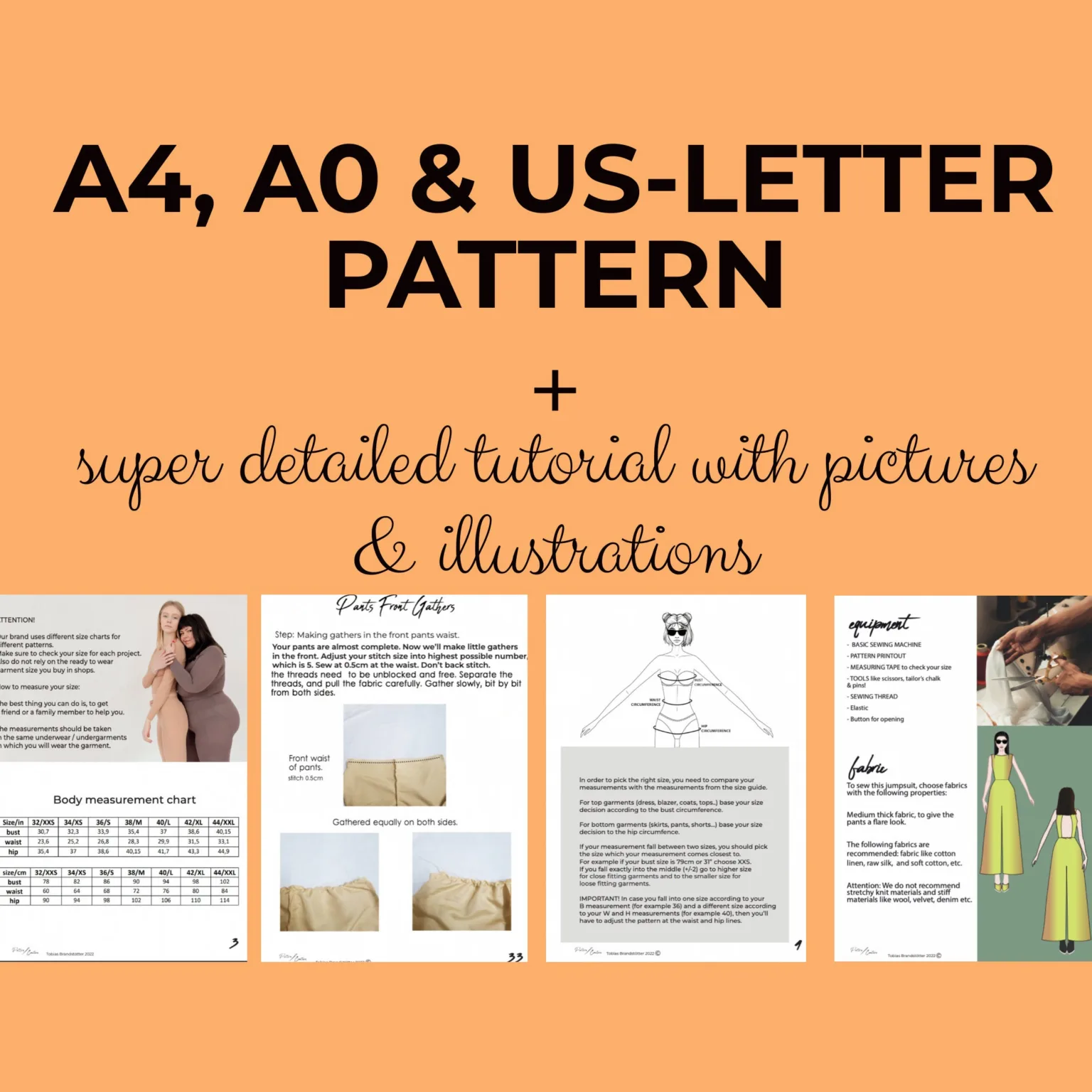 You can easily download the PDF pattern in US Letter, A4, or A0 format—print it at home or at a local print shop. To assist you, we include a detailed 44-page illustrated tutorial that walks you through every step of the sewing process!