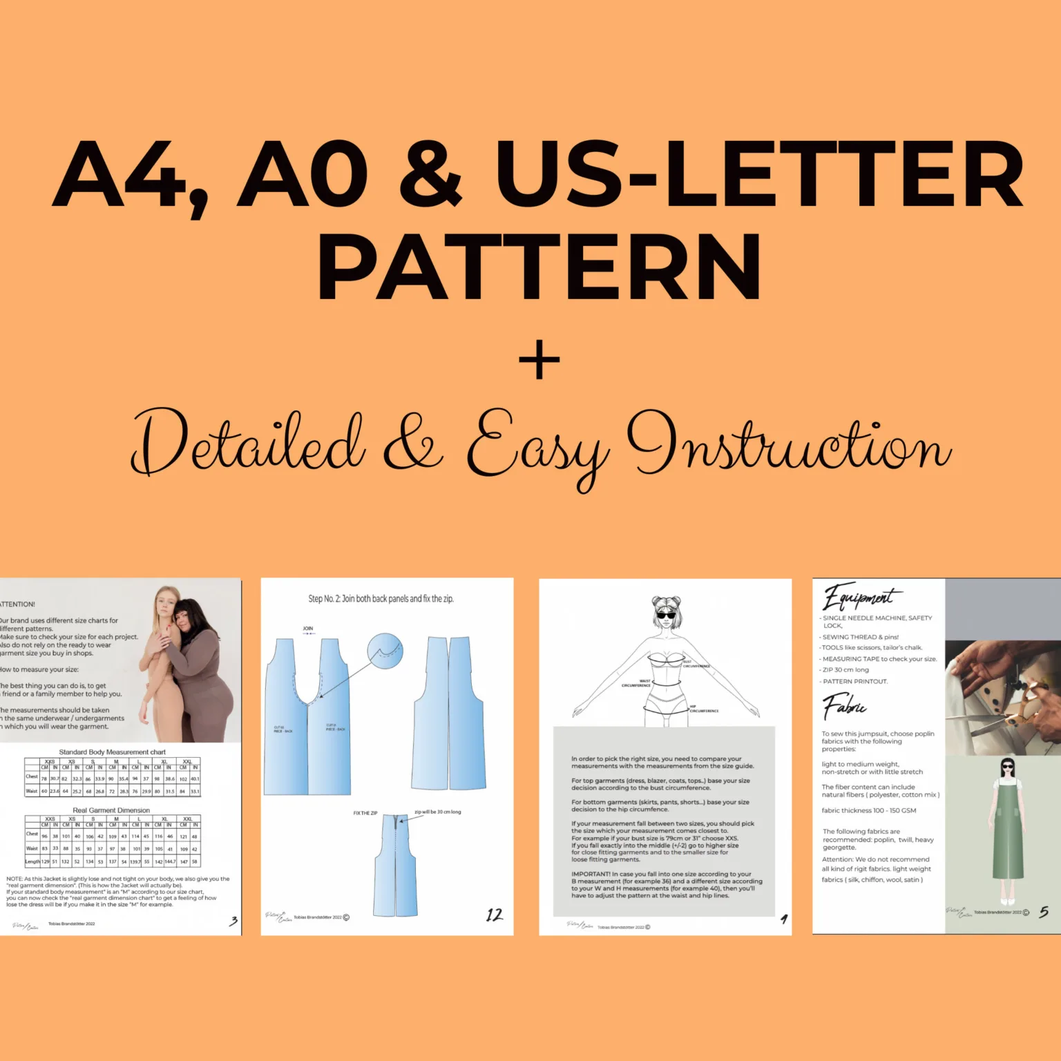 You’ll receive a PDF download in A4, A0, and US Letter formats, allowing you to print it easily at home or at a print shop. Plus, the 20-page illustrated tutorial guides you step-by-step, making the sewing process simple and fun.